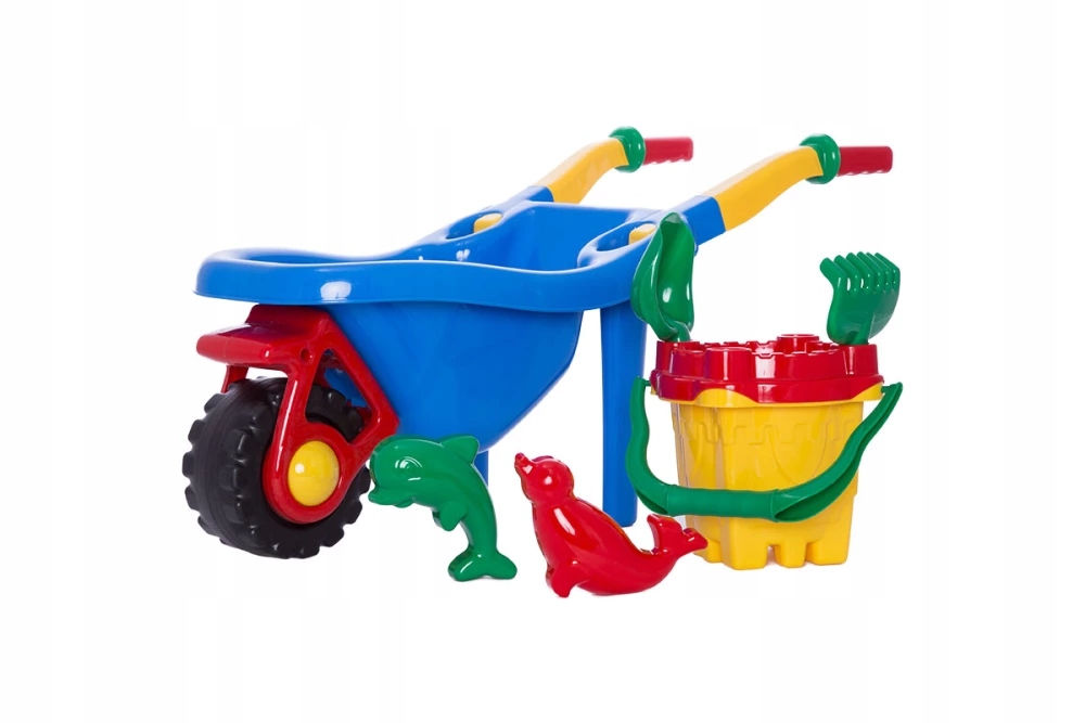 Наш малыш с радостью перевезет необходимые для игры аксессуары в тачке.