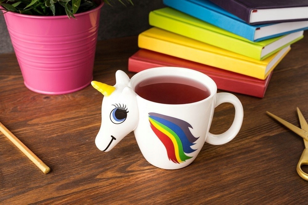 Симпатичная кружка с единорогом. Его радужная грива под воздействием тепла приобретает яркие цвета и становится еще приятнее глазу :) Эта кружка - отличный способ скрасить утренний день и придать ему немного позитивного волшебства. Наполните кружку ароматным кофе, чаем или горячим какао, чтобы насладиться видом милого единорога с радужной гривой. День, начавшийся таким образом, прогонит ваше плохое настроение и сгустившиеся над вами темные тучи.