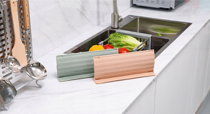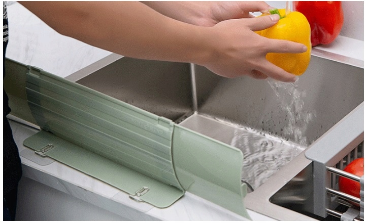 Защита от брызг изготовлена из полипропилена, легкая, портативная и прочная. Предотвращает разбрызгивание воды на одежду или пол при мытье посуды.