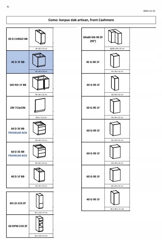 <ул>Нижние шкафы с передней панелью и полкой доступны в разных размерах