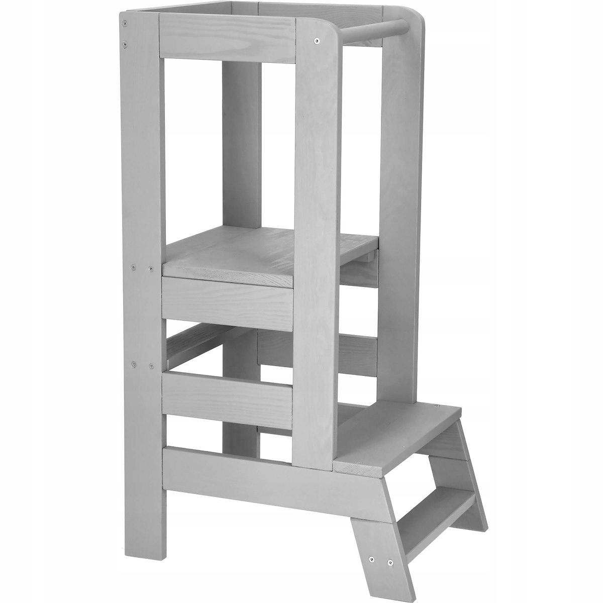 Огромным преимуществом кухонного помощника является возможность регулировки высоты платформы на 3 уровнях - 22,35 см. см или 51 см. Просто снимите подвижное основание и установите его на одной из 3 возможных высот. Встроенная верхняя часть обеспечивает полную безопасность ребенка при приготовлении различных блюд на кухне. Мы также позаботились о таких деталях, как тщательная шлифовка краев.
