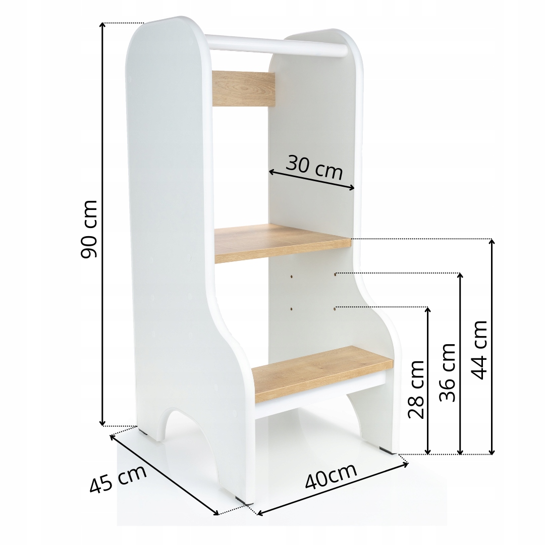 - Глубина (ширина по бокам): 30 см (верхняя часть) )/ 45 см (с нижней ступенькой)