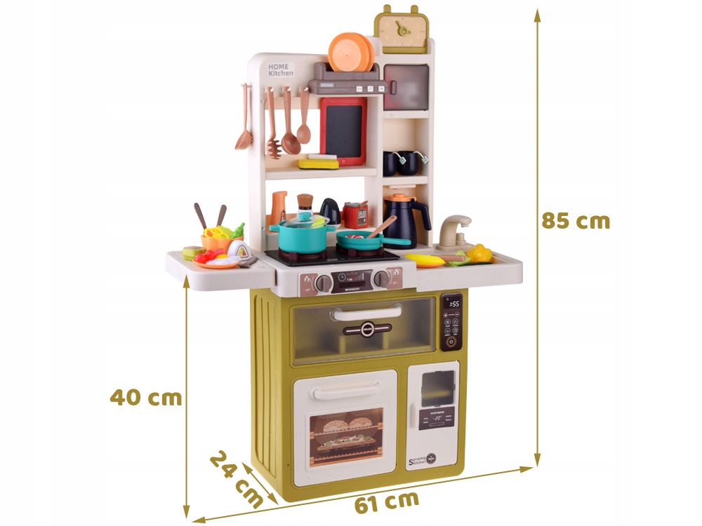 Фантастическая кухня для детей в кремовых и зеленых тонах с 49 аксессуарами и паровым эффектом — мечта многих маленьких поваров. Каждый ребенок любит играть с кухонными принадлежностями и имитировать приготовление еды. Такой набор поможет вашему ребенку приготовить множество изысканных блюд своей мечты и организовать богатый банкет для своих плюшевых мишек, кукол или мамы, папы, братьев и сестер, бабушек и дедушек или друзей.