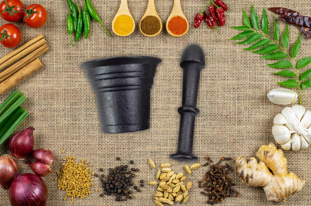 ✅ Эффективность: Чугунная ступка эффективно измельчает специи, травы, орехи и других ингредиентов благодаря своей массивности и твердости.
