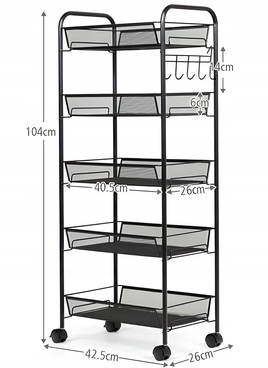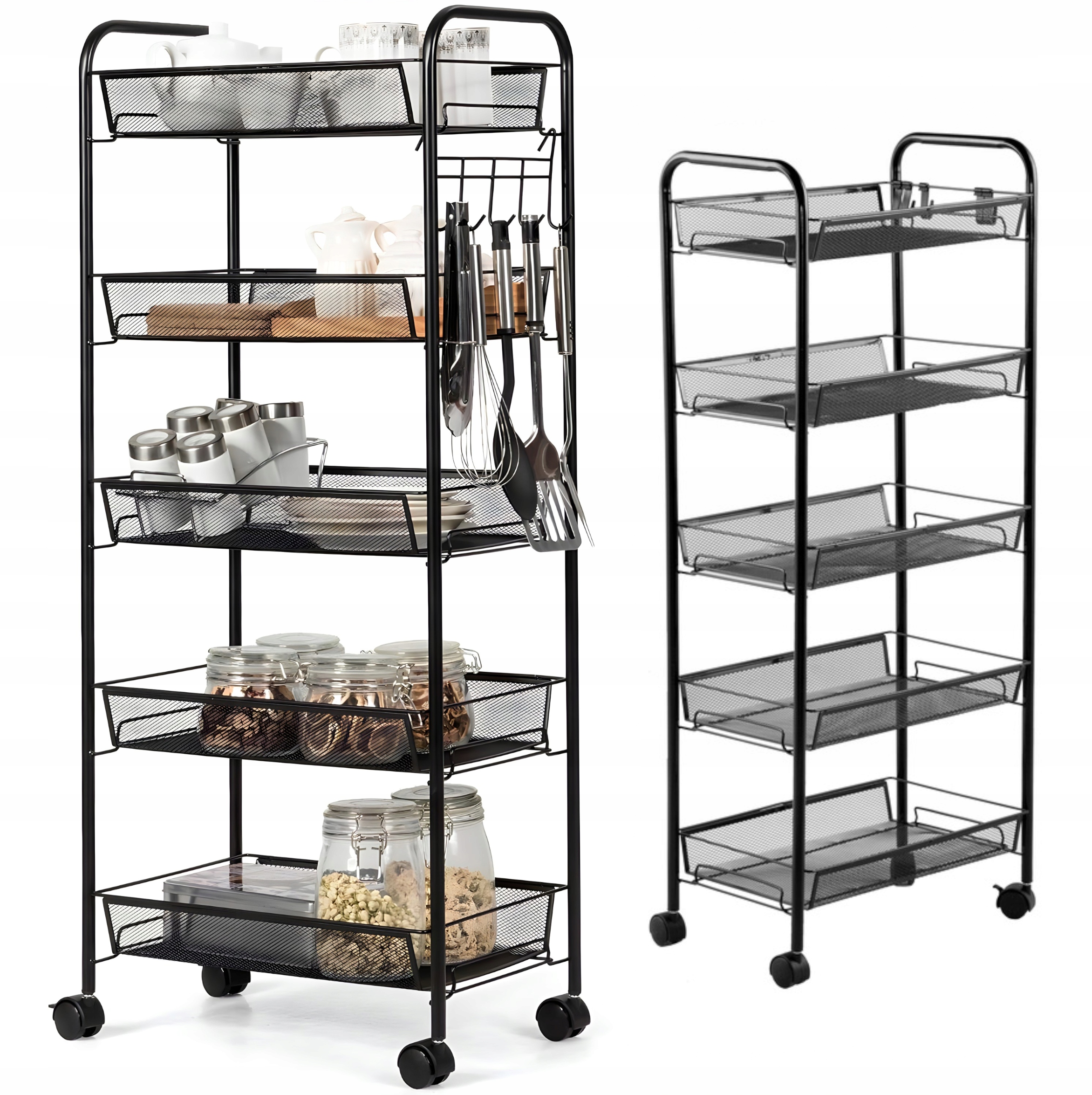 КУХОННА ПОЛИЦЯ П'ЯТИРІВНА ПЕРЕСУВНА ШАФА НА КОЛЕСКАХ КОШИКИ