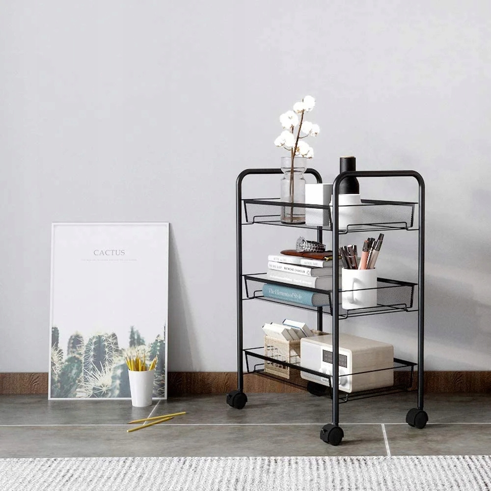 КУХОННА ШАФА НА КОЛЕСЦЯХ ТРОЛЕЙ ПОЛИЦЯ МОБІЛЬНИЙ СТОЛ ЧОРНИЙ ПОМІЧНИК 3 ПОЗИЦІЇ
