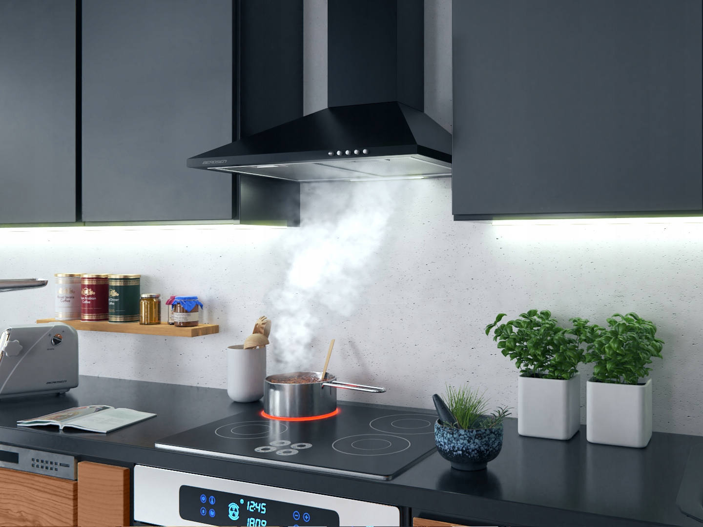 КУХОННАЯ ВЫТЯЖКА ДЛЯ ДЫМОХОДА 60см +ТРУБА +СВЕТОДИОДНЫЙ ДЫМОХОД