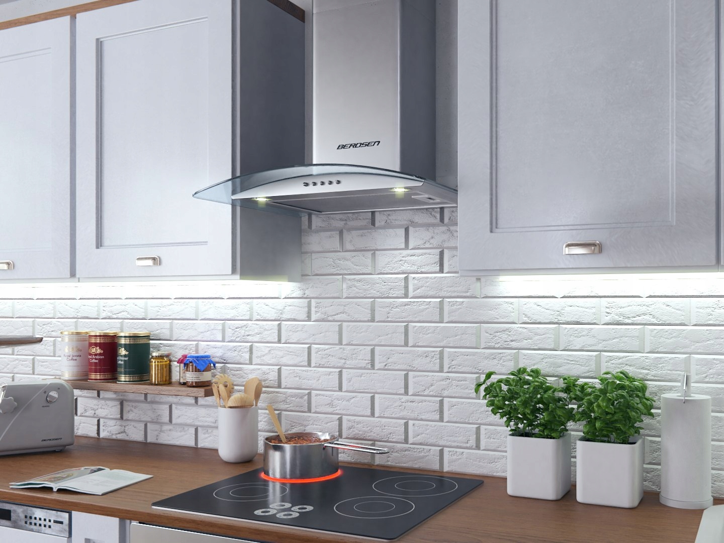 Современная кухня и вытяжка Berdsen 90 см Inox