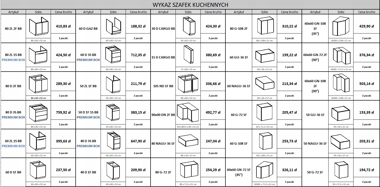 <ул>Нижние шкафы с передней панелью и полкой доступны в разных размерах