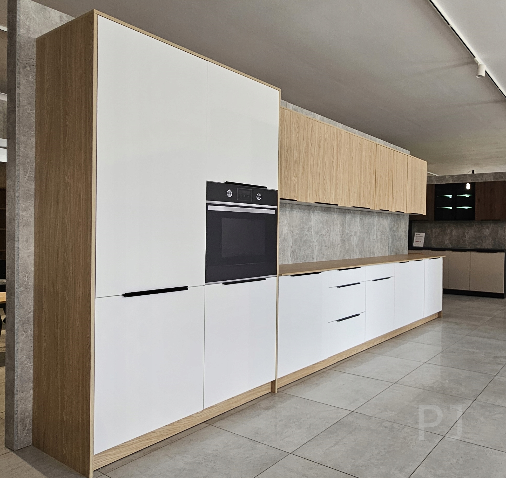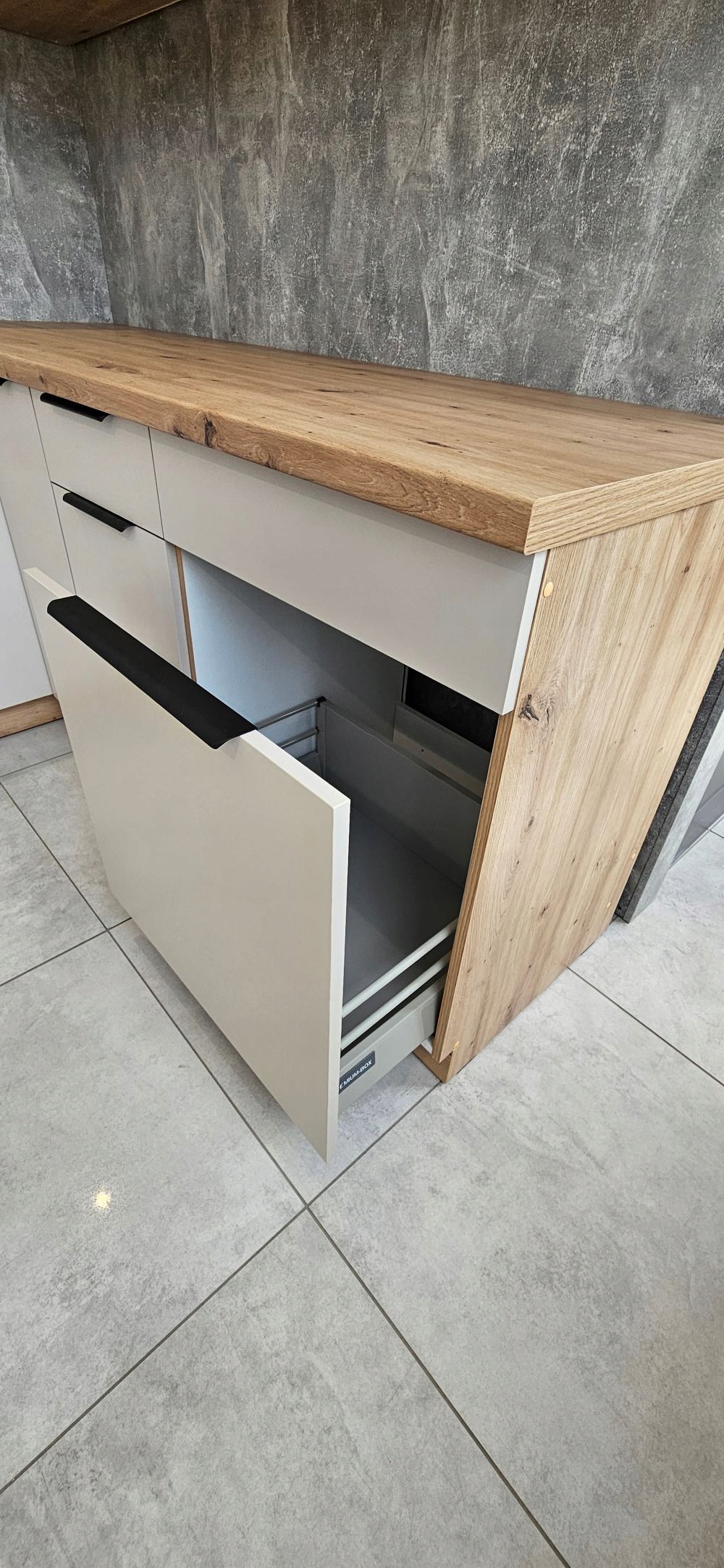 - фасады ламинат 16 мм - белый цвет против прикосновений и промасленный дуб - кромка покрыта АБС 1 мм