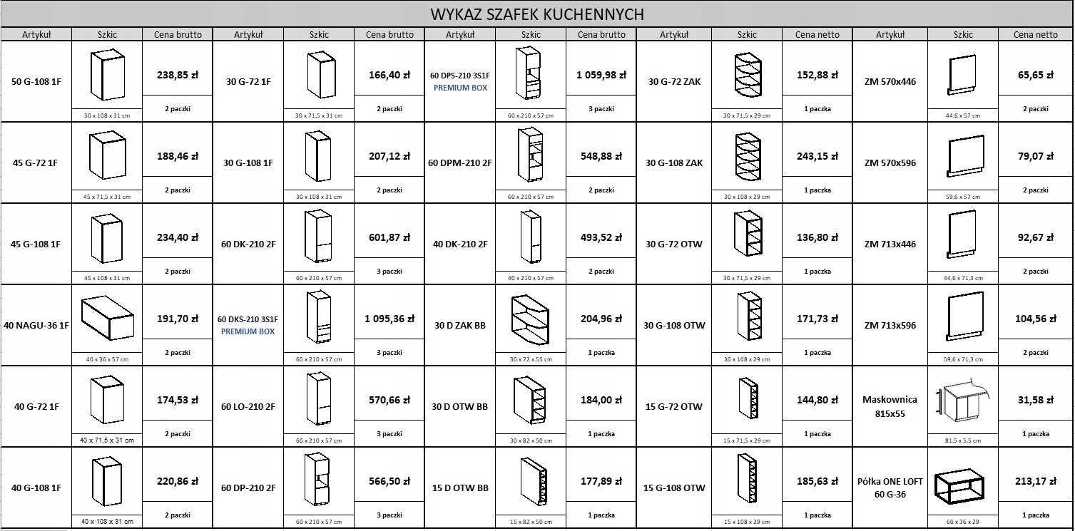 <ул>Верхние шкафы с фасадами высотой 72 см или 90 см