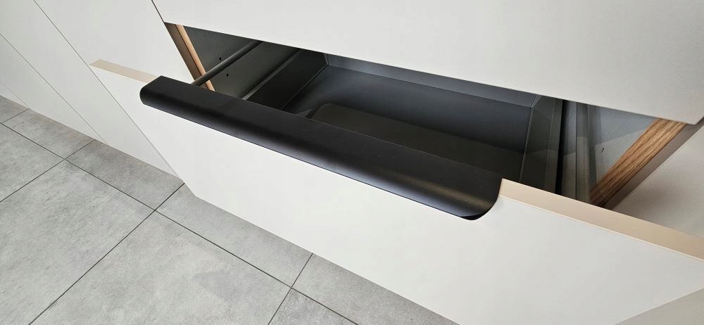 - черная металлическая кромка ручек, расположение ручек по центру спереди