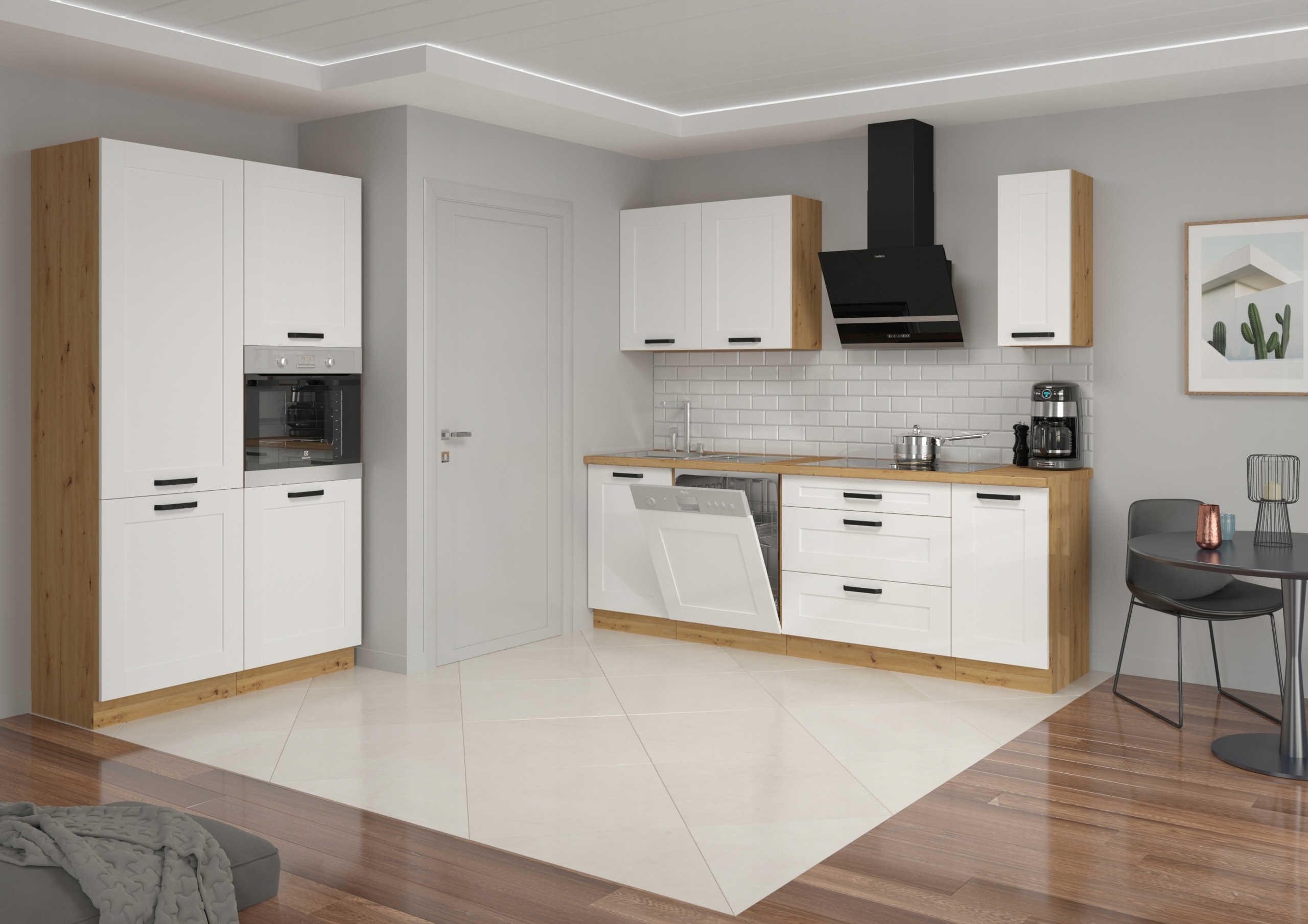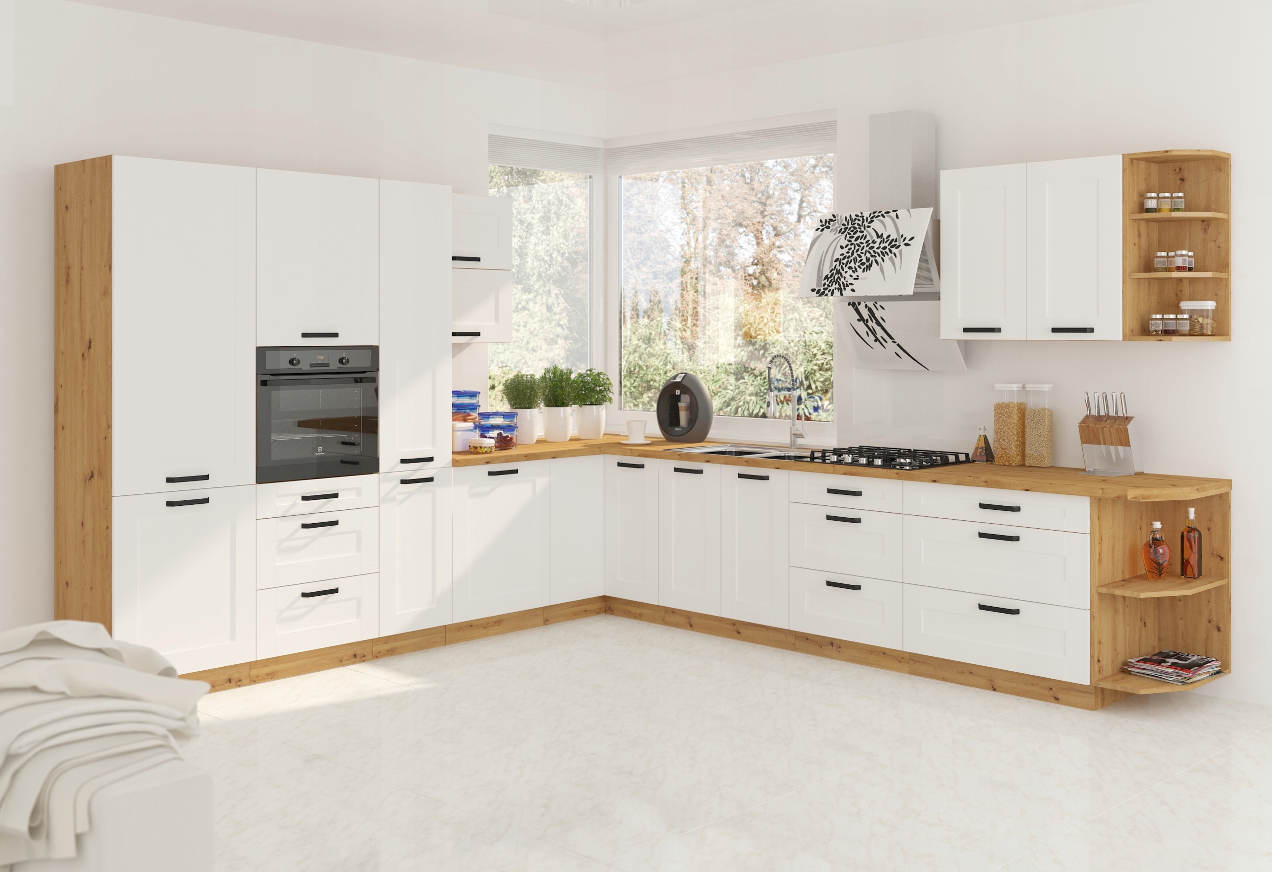 Дизайн и цена. Достаточно указать размеры помещения, расположение подключений, тип бытовой техники. Вы получите предложение по расстановке шкафов с ценой.
