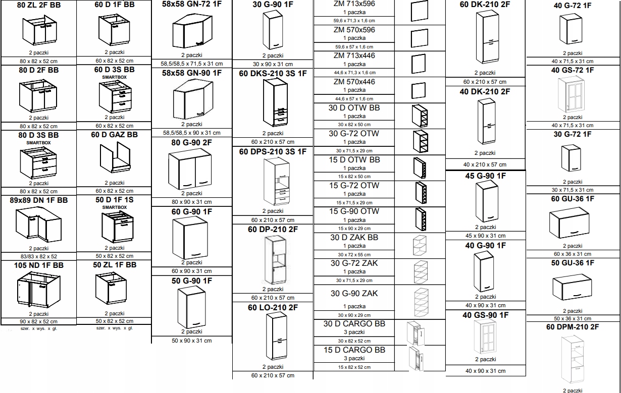 - 80 ZL 2F BB размеры: ширина 80 х высота 82 х глубина 52 см - шкаф для встроенной мойки,