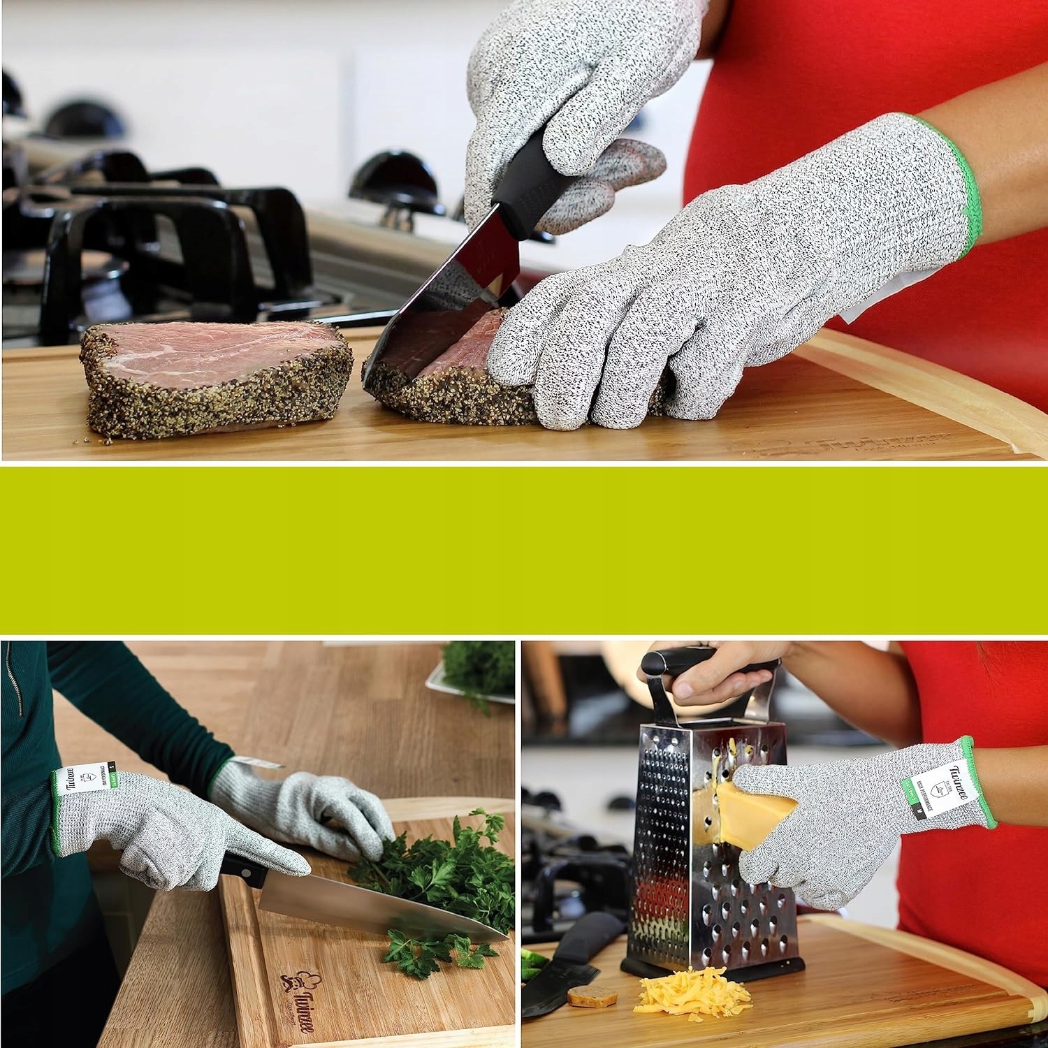 - ИМЕЕТЕ ЛИ ВЫ НЕИЗВЕСТНУЮ ПРИВЫЧКУ ПОРЕЗАТЬСЯ ВО ВРЕМЯ ГОТОВКИ? Устойчивые к порезам перчатки многофункциональны: рабочие перчатки, пищевые перчатки, перчатки для запекания, перчатки для защиты от перегрева, перчатки для домашних работ... Они обеспечивают оптимальную защиту от всех повседневных порезов (приготовление пищи, домашние работы).