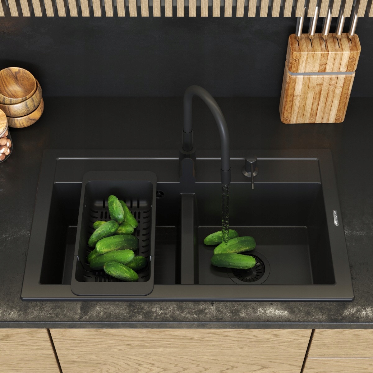 Кухонный комплект кухня черная кухонная батарея Grado Plus Dispenser