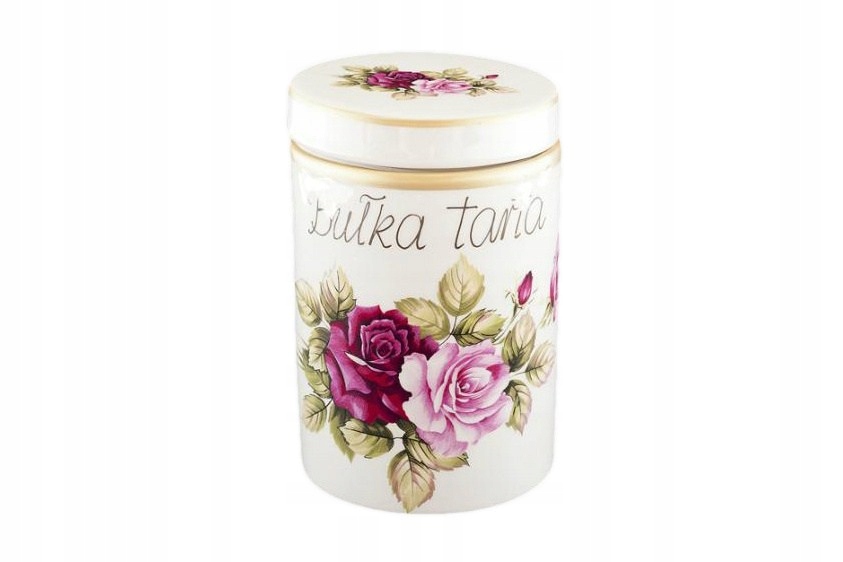 У нас вы можете купить контейнеры на заказ с мотивом РОЗЫ и любой надписью. Контейнер кремового цвета. Изготовлен из утилитарной благородной керамики. Произведено в Польше на фабрике тонкой керамики в Мерошуве. Керамику можно мыть в домашних посудомоечных машинах.