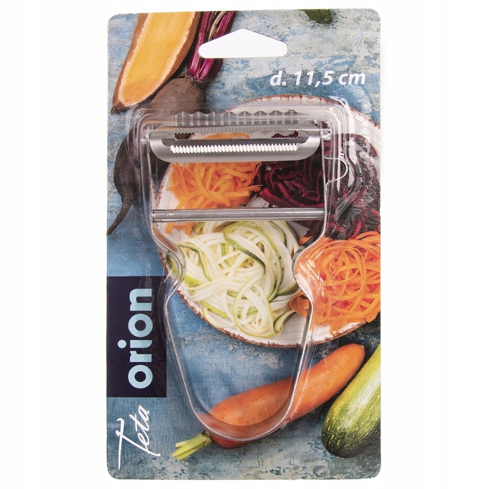 Двойной овощ и фруктовый пилер, полезный на каждой кухне. Он работает для быстрого и легкого очистки кутикул, например, картофель, яблоки или помидоры. Идеально подходит для разрезания тонких пятен или украшения. У Peeler есть практическая ручка и острые лезвия, благодаря тому, что его использование очень удобно. Благодаря этому вы можете легко взять свежие овощи и фрукты. Оригинальный продукт чешского бренда Orion. был произведен в соответствии с европейскими стандартами.