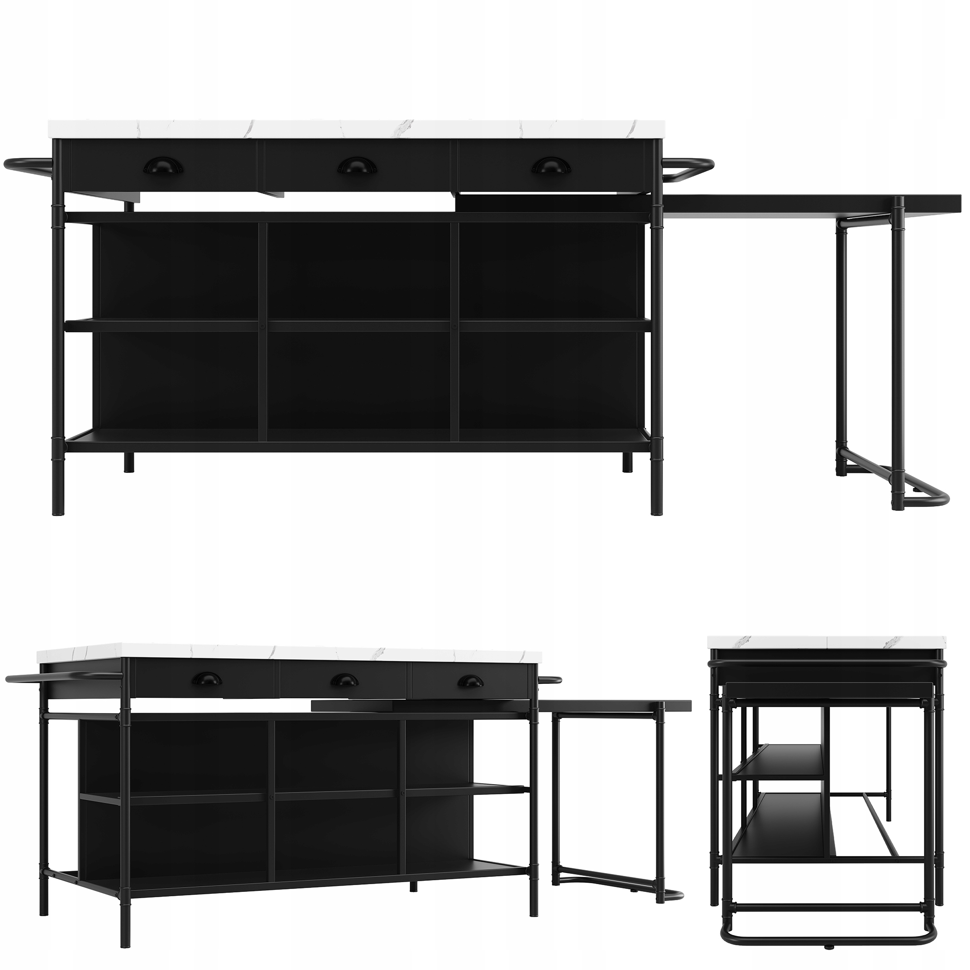 Кухонный остров с складным топом, ящиками, MDF, промышленным мрамором.