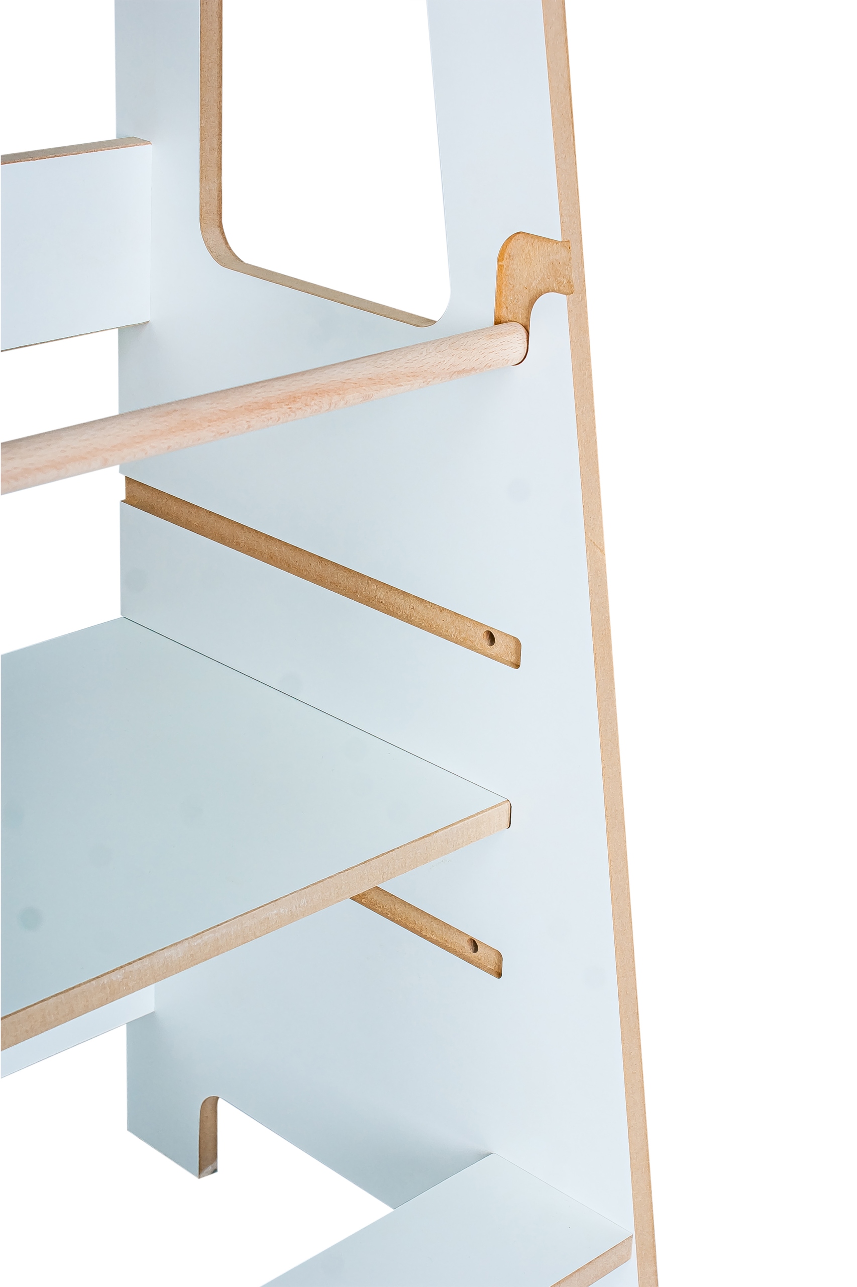 Белый ламинированный МДФ. Изделие отшлифовано вручную с максимальным вниманием к деталям и комфорту ребенка.