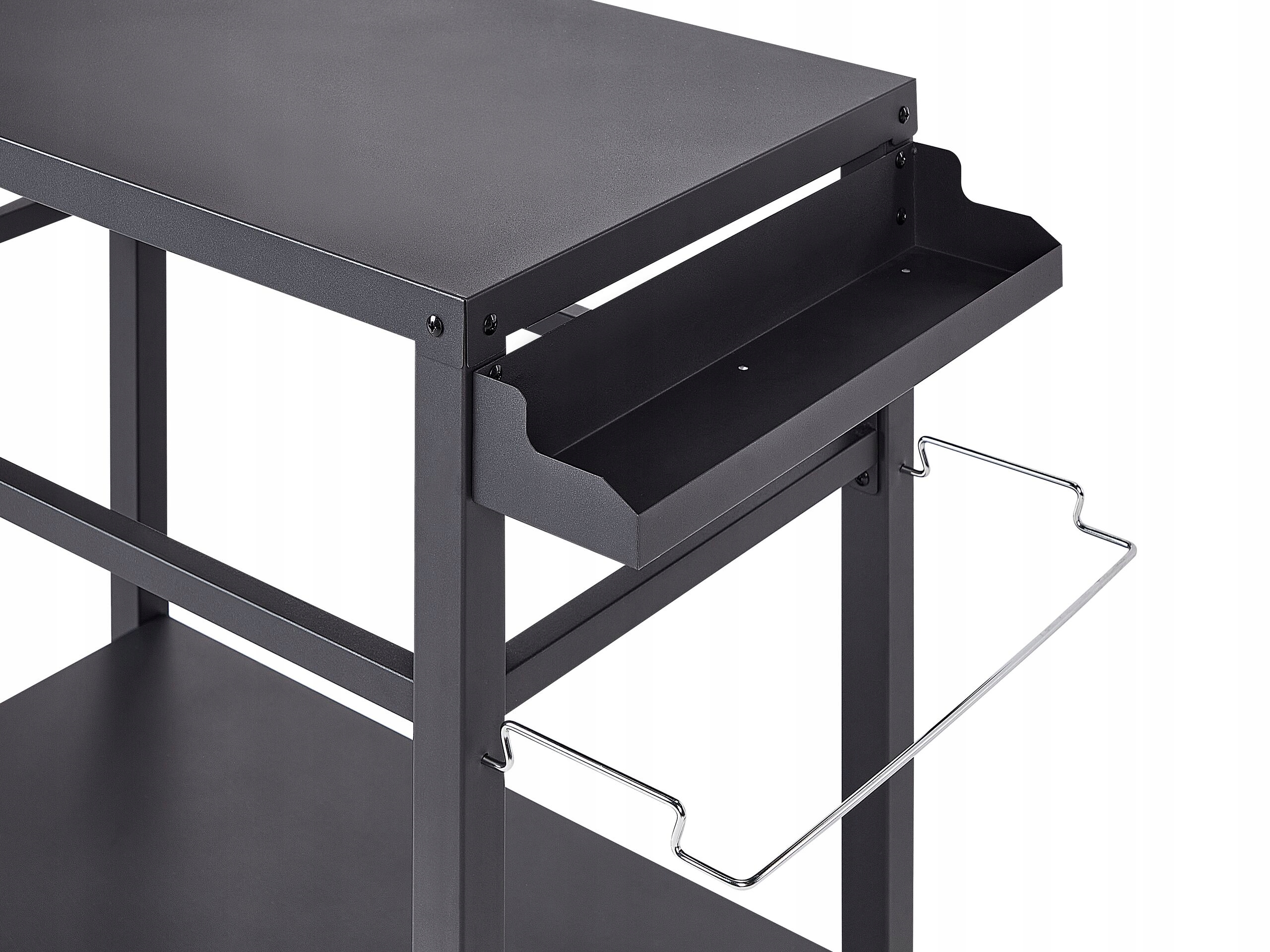 Тележка для садовой кухни — стильное и практичное дополнение к любому патио. Изготовленный из прочной стали с порошковым покрытием, он идеально подходит для сервировки еды. Удобный вешалка для полотенец и вешалки позволят держать все необходимое под рукой, а на нижней полке достаточно места для хранения посуды, напитков и других предметов. Колесная конструкция обеспечивает легкую мобильность, а организовать вечеринку в саду с этой коляской — сплошное удовольствие.
