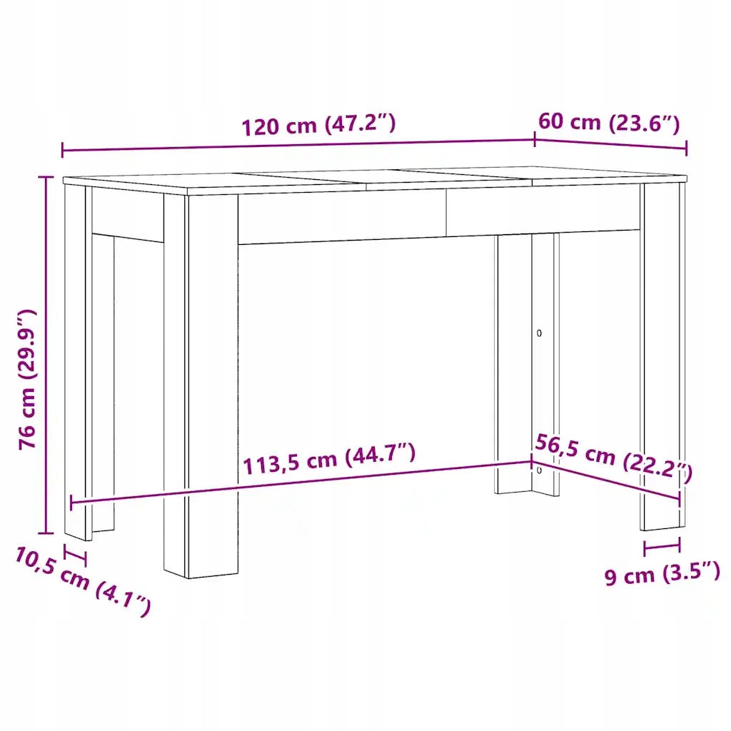 - Размеры: 120 x 60 x 76 см (длина x Ширина x Высота)