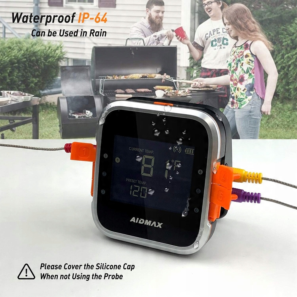 Aidmax WR01оснащен2 датчиками с возможностью расширения до 6 датчиков. Это позволяет контролировать несколько блюд или блюд одновременно и температуру коптильни/гриля/духовки. Он также поможет вам быстро и легко определить температуру любого мяса/блюда с точностью до 1 градуса °C (диапазон 0–99 градусов °C).
