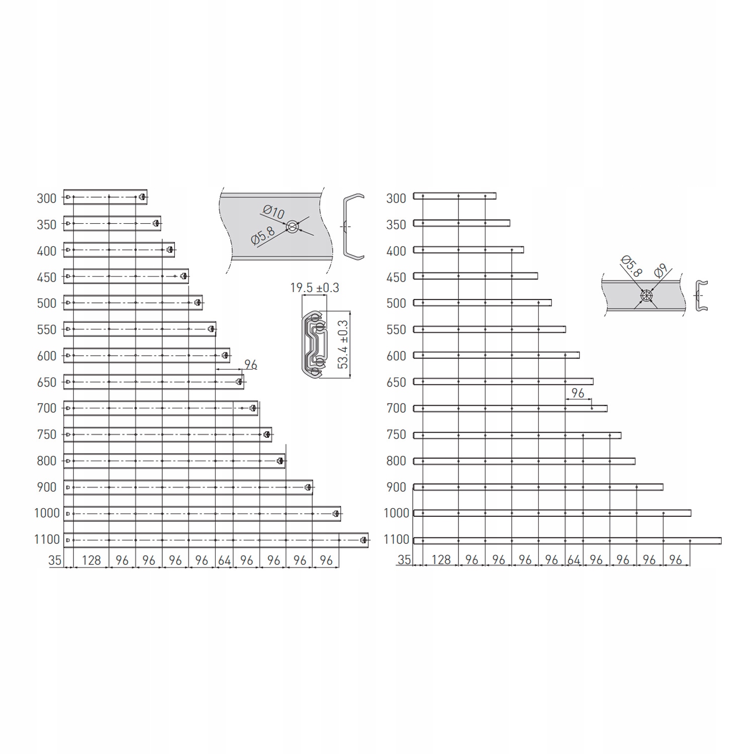 Шариковая направляющая H-53 мм с полным выдвижением идеально подходит для мебельных ящиков. Направляющая имеет возможность демонтажа частей направляющей и механизм, предотвращающий выпадение ящика. Направляющая имеет грузоподъемность до 110 кг. Качественный путеводитель по низкой цене. Продукт польского производителя Amix. В комплект входят левая и правая направляющие.