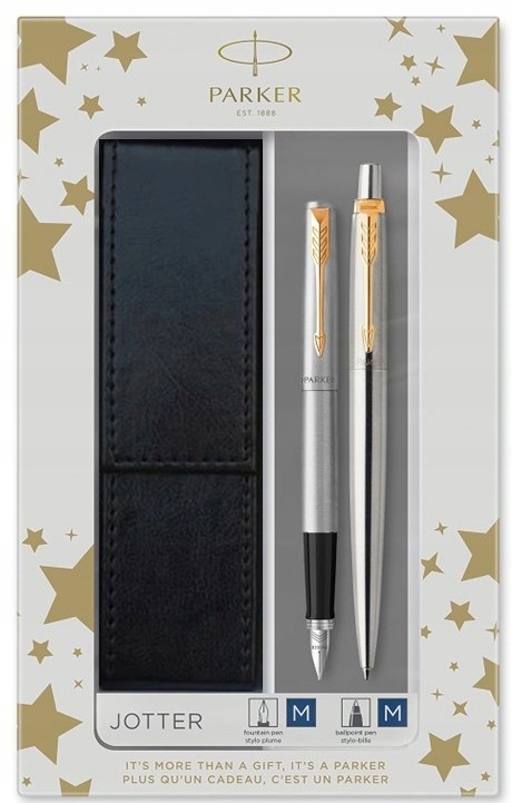 Бренд Parker в настоящее время обновляет свою коллекцию подарочных наборов. В зависимости от партии товара могут появиться новые с золотыми звездочками (на фото ниже). Если вам нужна конкретная упаковка (предыдущая серая или новая со звездами), укажите это в заказе