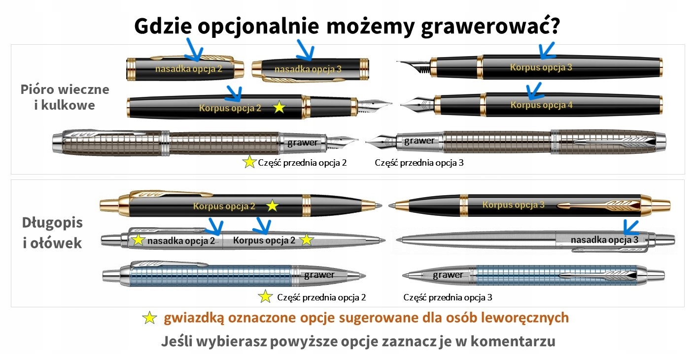 Ниже гравировка на всех изделиях. Здесь мы гравируем корпус и колпачок ручки, а также корпус и колпачок ручки (отмечено синими стрелками)