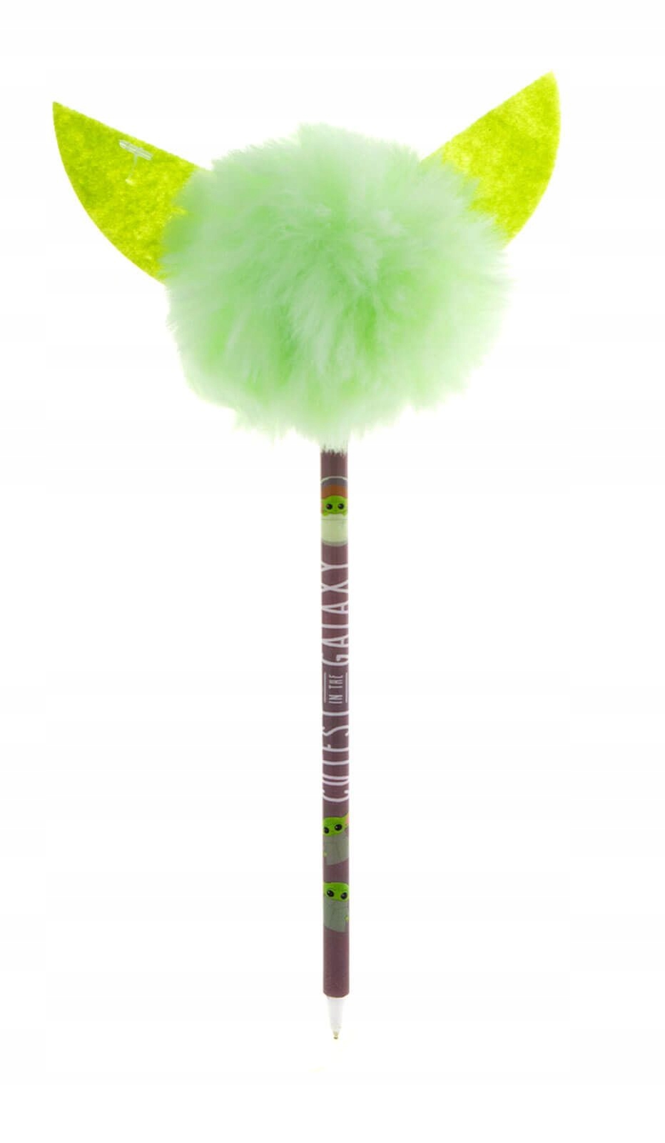 Коричневый корпус ручки украшен надписью «самый милый в галактике», которая как нельзя лучше отражает обаяние персонажа Грогу. Однако самой большой достопримечательностью этой ручки, безусловно, является ее верх. Зеленый пушистый шарик с пришитыми заостренными ушками напоминает всем поклонникам «Мандалорца» об этом маленьком, но мощном обладателе Силы. Не ждите и позвольте себе ощутить немного волшебства «Звездных войн» в повседневной жизни! Это идеальный подарок для каждого поклонника саги и незаменимая вещь для поклонников Грога.