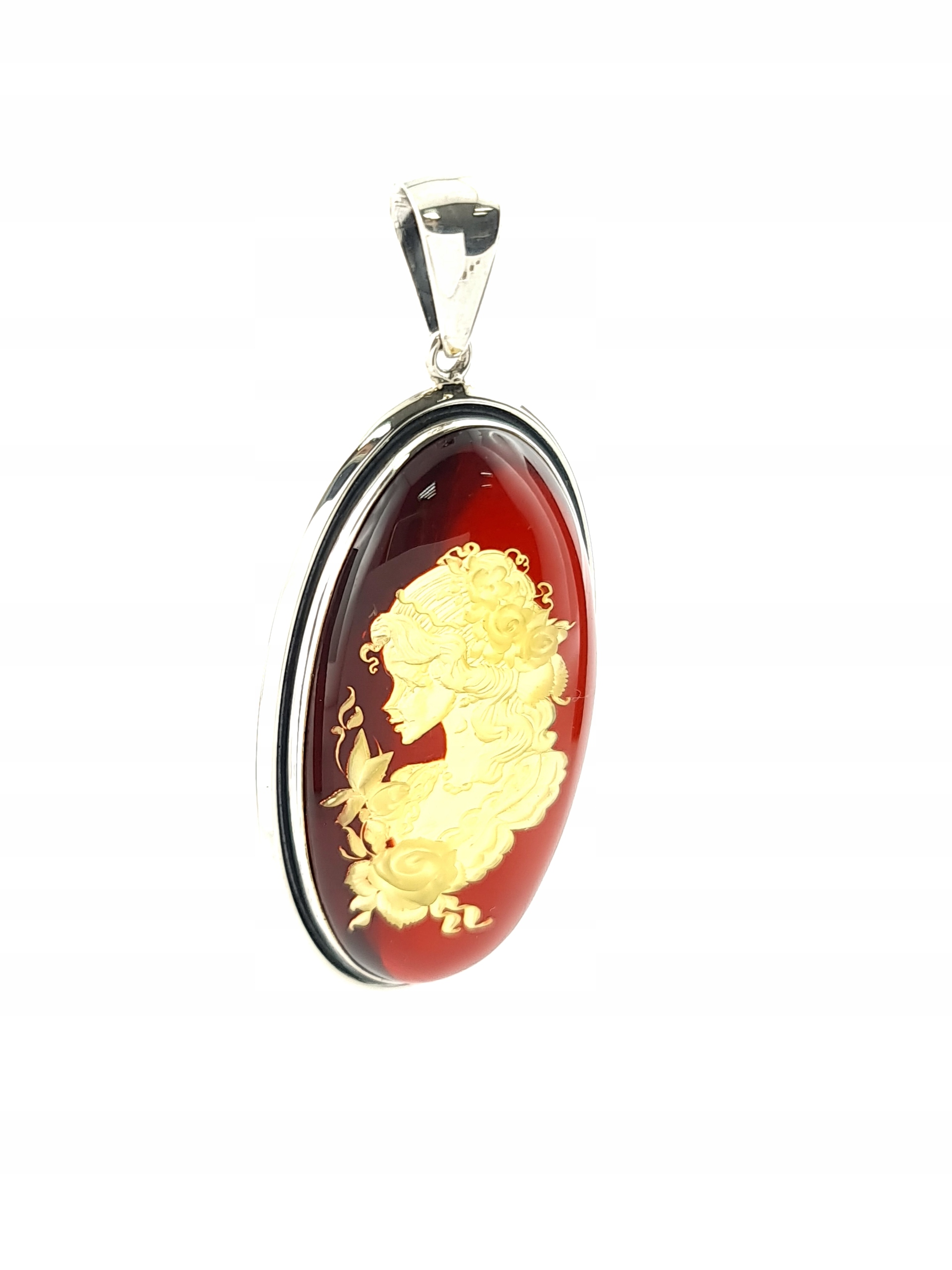 Красивая подвеска-камея, женская работа ручной работы из 100% балтийского янтаряв оправе из серебра высочайшего качества.