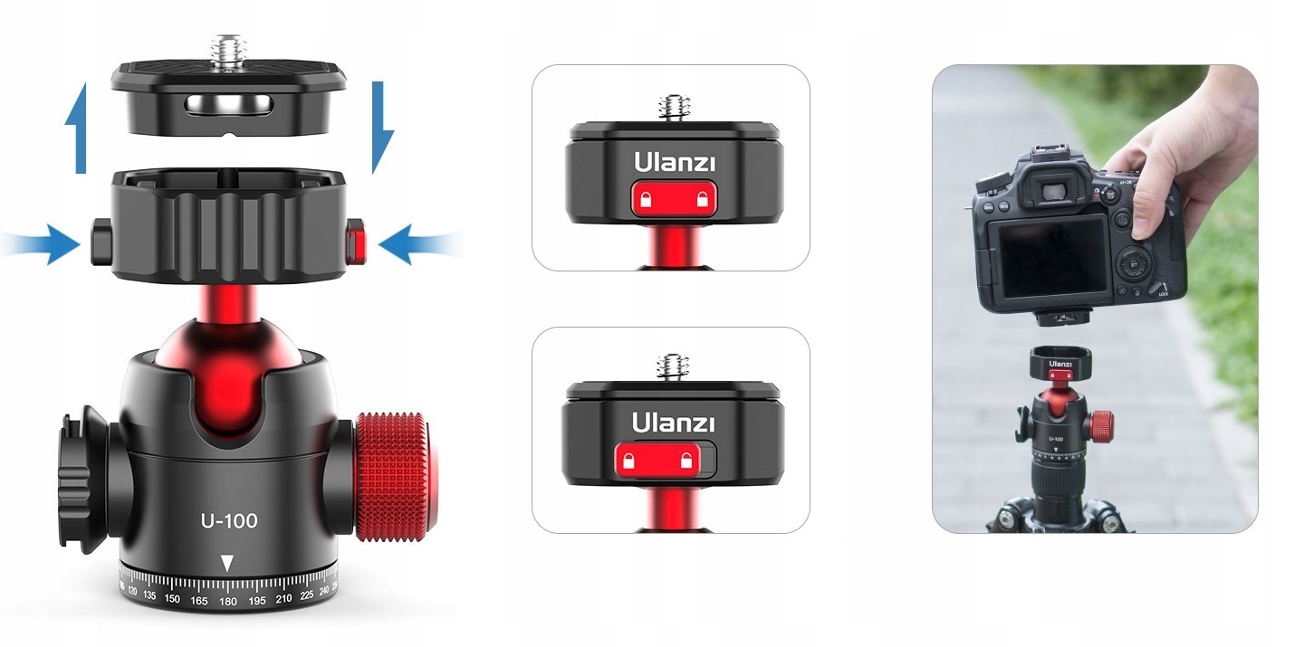Панорамная шаровая головка на 360°, быстросъемная VLOG ULANZI U-100 U100