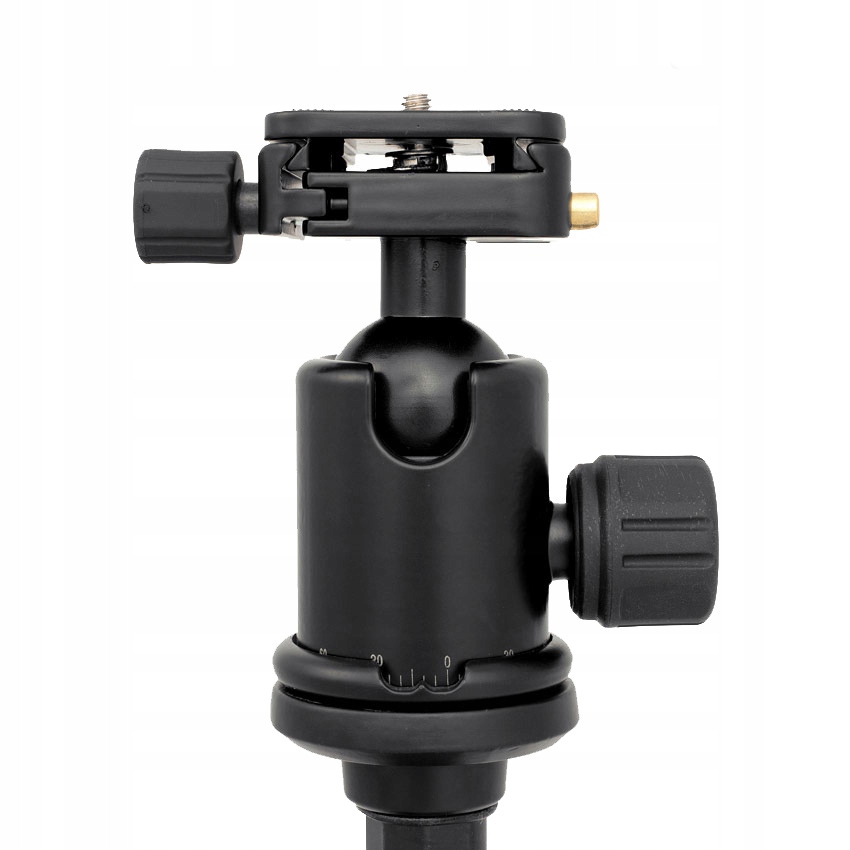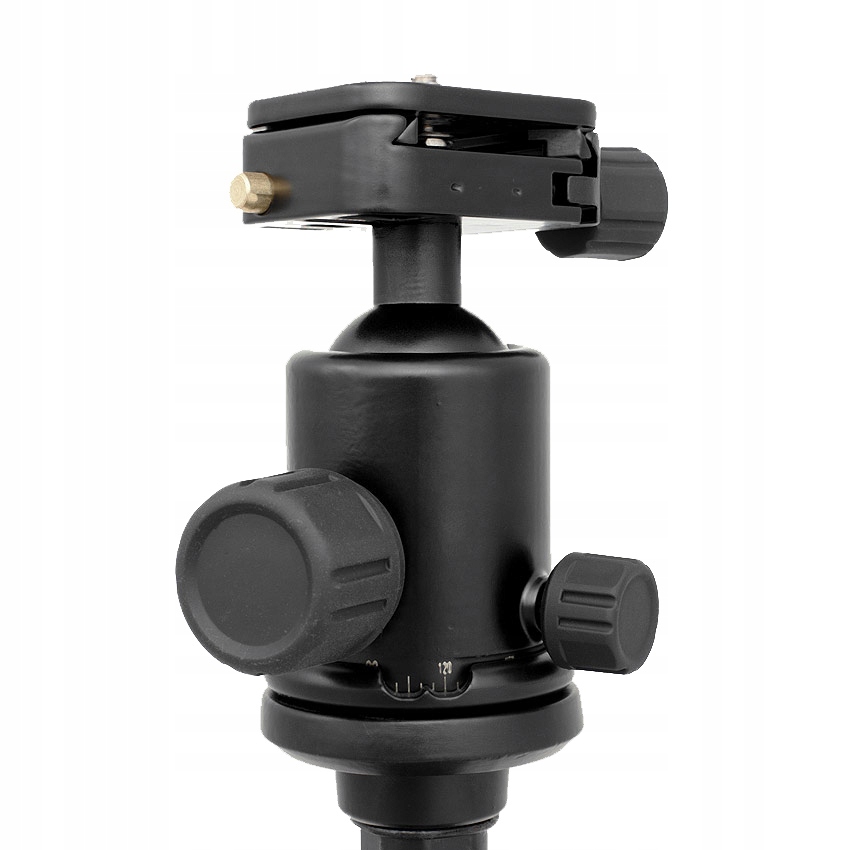 В комплект входит шаровая головка CineGEN® (на резьбе 3/8 дюйма), позволяющая установить камеру в нужное положение. Головка оснащена самоблокирующимся быстросъемным разъемом. Фиксирующая защелка быстрого разъема двухступенчатая, что предотвращает его блокировку при отсоединении камеры.Головка позволяет вращаться на 360 градусов в горизонтальной плоскости и наклоняться по вертикали в диапазоне от -90° до +90°.Для идеально точное вращение, на головке установлена угловая шкала, что особенно удобно при съемке фотографий в режиме панорамы.Поворот головы по горизонтали, мы можем зафиксировать его с помощью дополнительной ручки меньшего размера.Голова оснащена большим и удобным винтом с шариковым стопором. Все ручки замка покрыты материалом, приятным на ощупь и не допускающим соскальзывания пальцев.