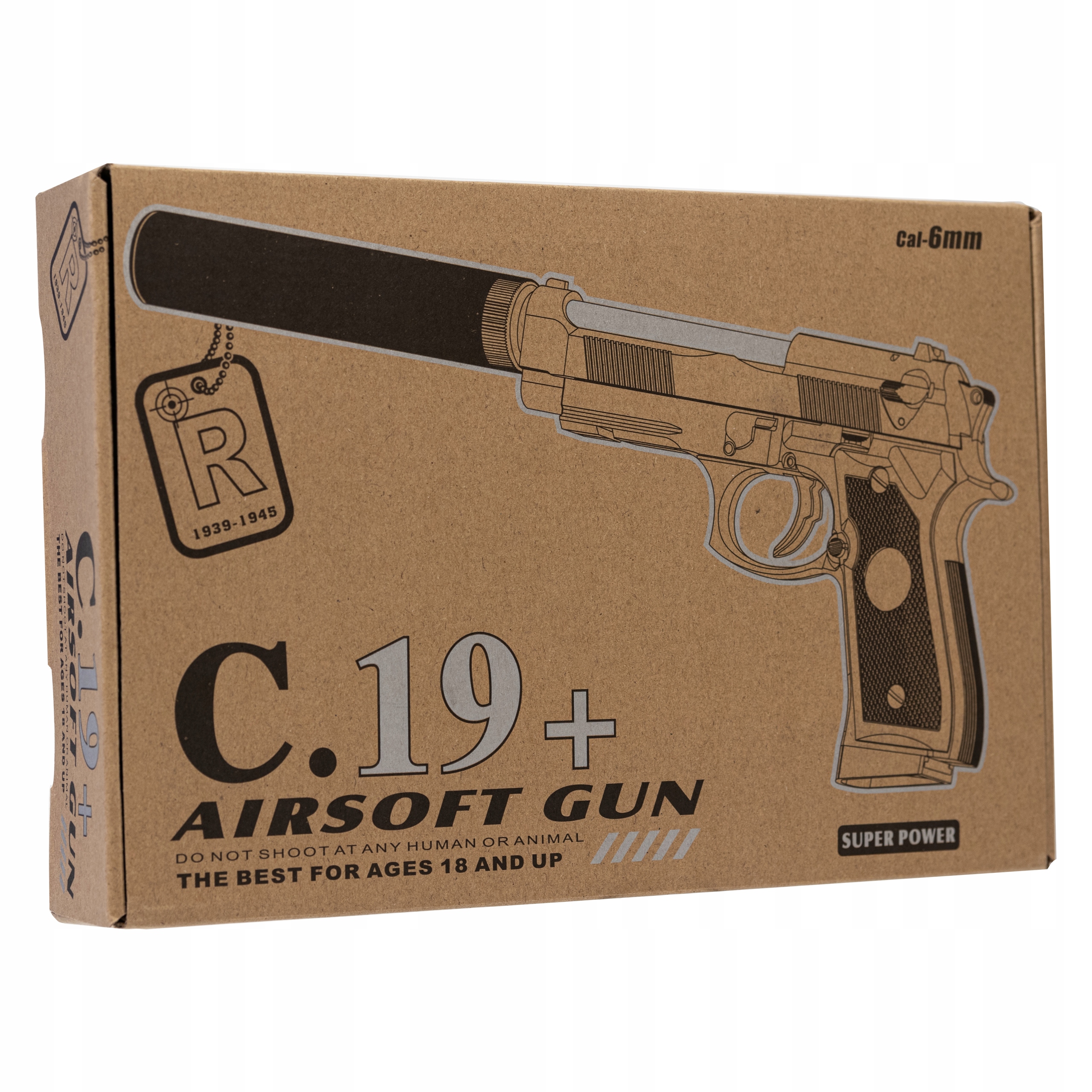 МЕТАЛЛИЧЕСКИЙ ШАРОВОЙ ПИСТОЛЕТ ASG + ГЛУШИТЕЛЬ + 1000 ШАРОВ