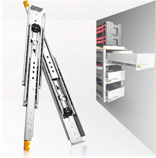Полностью растянутая и долговечная. Длина направляющей ящика равна закрытой длине. Изготовлен из холодной стали Q235, прочность на растяжение.