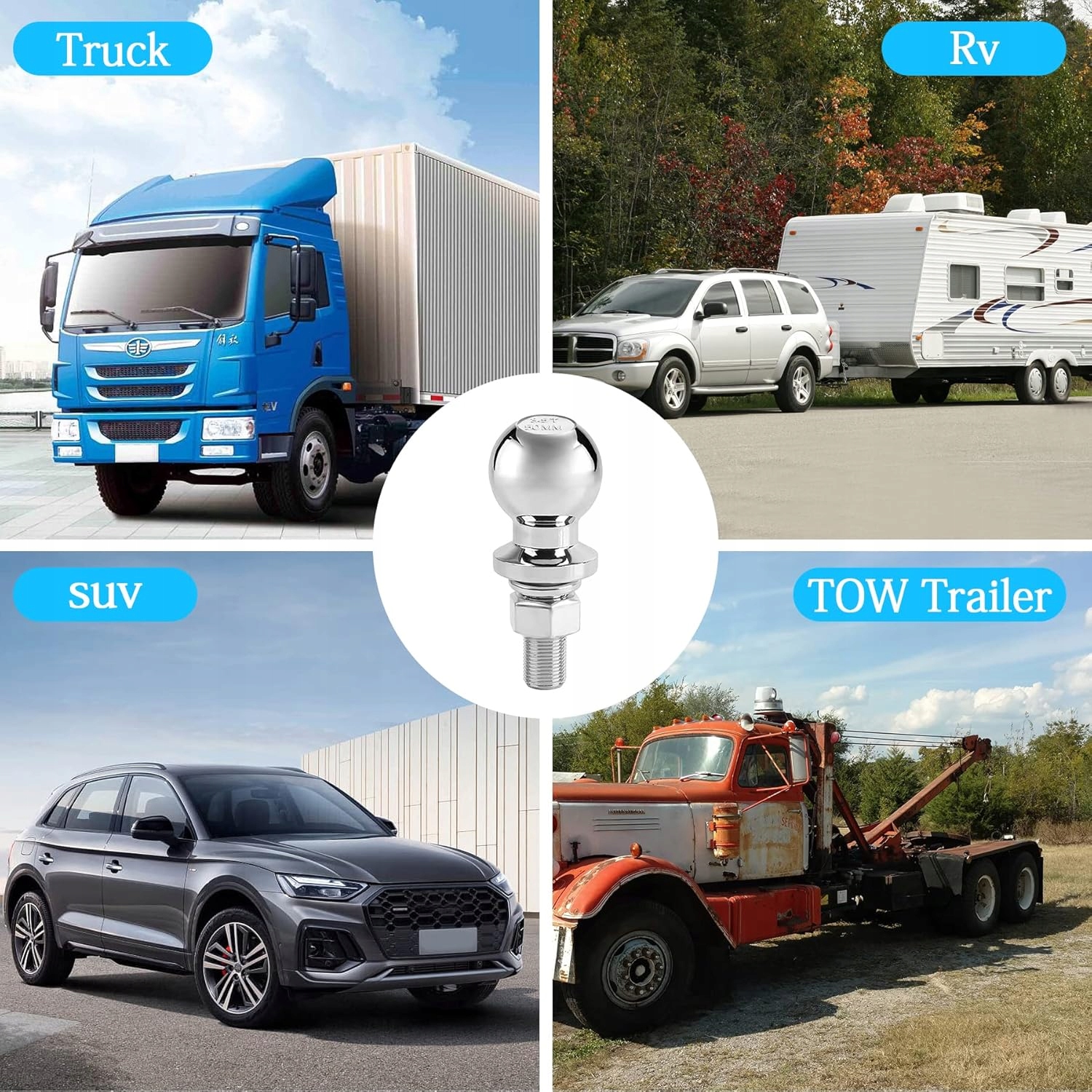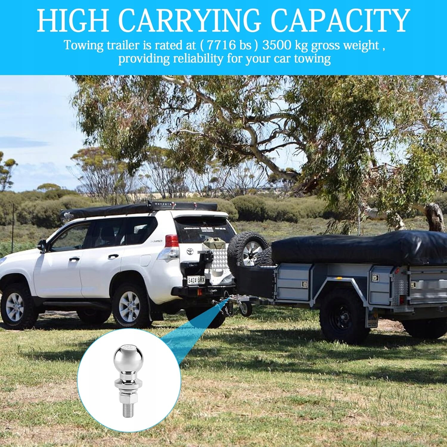 【Большая грузоподъемность】: при номинальной нагрузке прицепа общей массой до 3,5 тонн (7700 кг) эта шаровая опора хорошо тянет транспортные средства и обеспечивает надежность при буксировке автомобилей. Диаметр шара фаркопа: 50 мм/2 дюйма, диаметр пальца: 22 мм/0,87 дюйма.