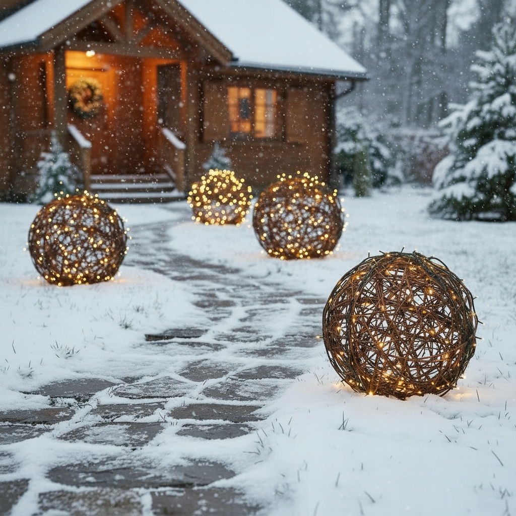 ✅ Рождественское украшение ➤ Оберните шар гирляндами, добавьте ветки ели или омелы, чтобы создать атмосферный декоративный элемент во время праздников.