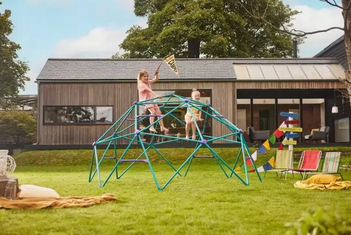 Геометрическая структура позволяет использовать различные формы игр и различные формы физической активности. Игра на нем улучшает координацию движений детей. Альпинистский купол устойчив к погодным условиям и защищен от ржавчины. Качество подтверждено сертификатом. Производитель детской площадки подготовил товар, упакованный в картонные коробки.