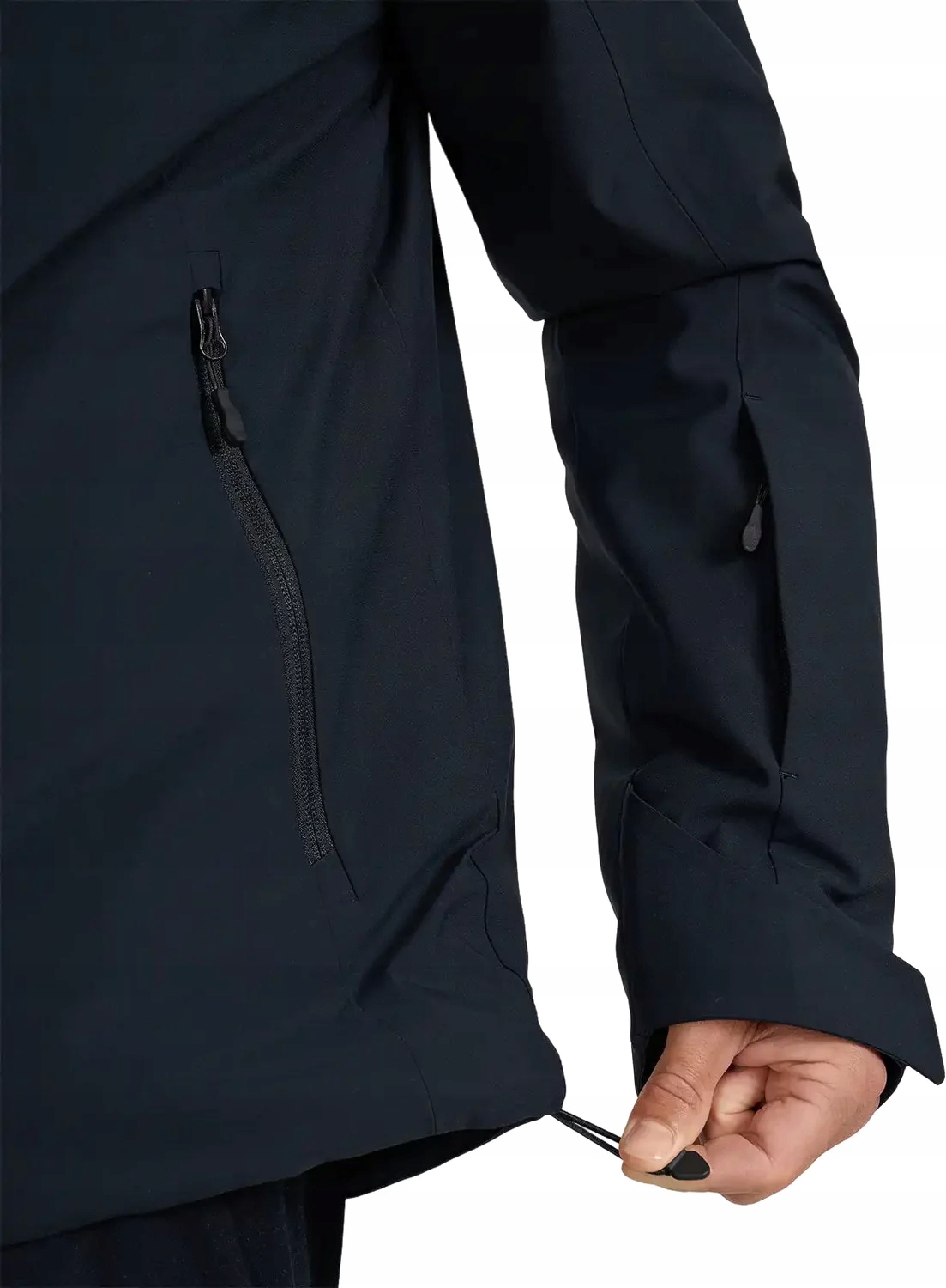 В куртке также имеется несколько функциональных карманов. Два боковых кармана на молнии — идеальное место для мелких вещей, которые стоит иметь под рукой. Карман для ски-пасса обеспечивает быстрый доступ к ски-пассу, что упрощает пользование подъемниками. Внутренний карман на молнии — безопасное место для телефона и документов, а карман для очков – удобное место для хранения лыжных аксессуаров.