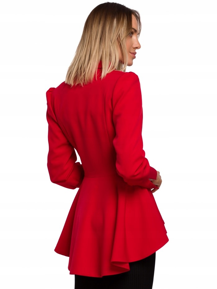 Уникальная куртка - Хвост. Ультра -фемейл, с сильно изложенной талией, подчеркнутой на стороне и волнистым хвостовым слоем. Длинные рукава были слегка сморщены с высокими манжетами с разрезом.