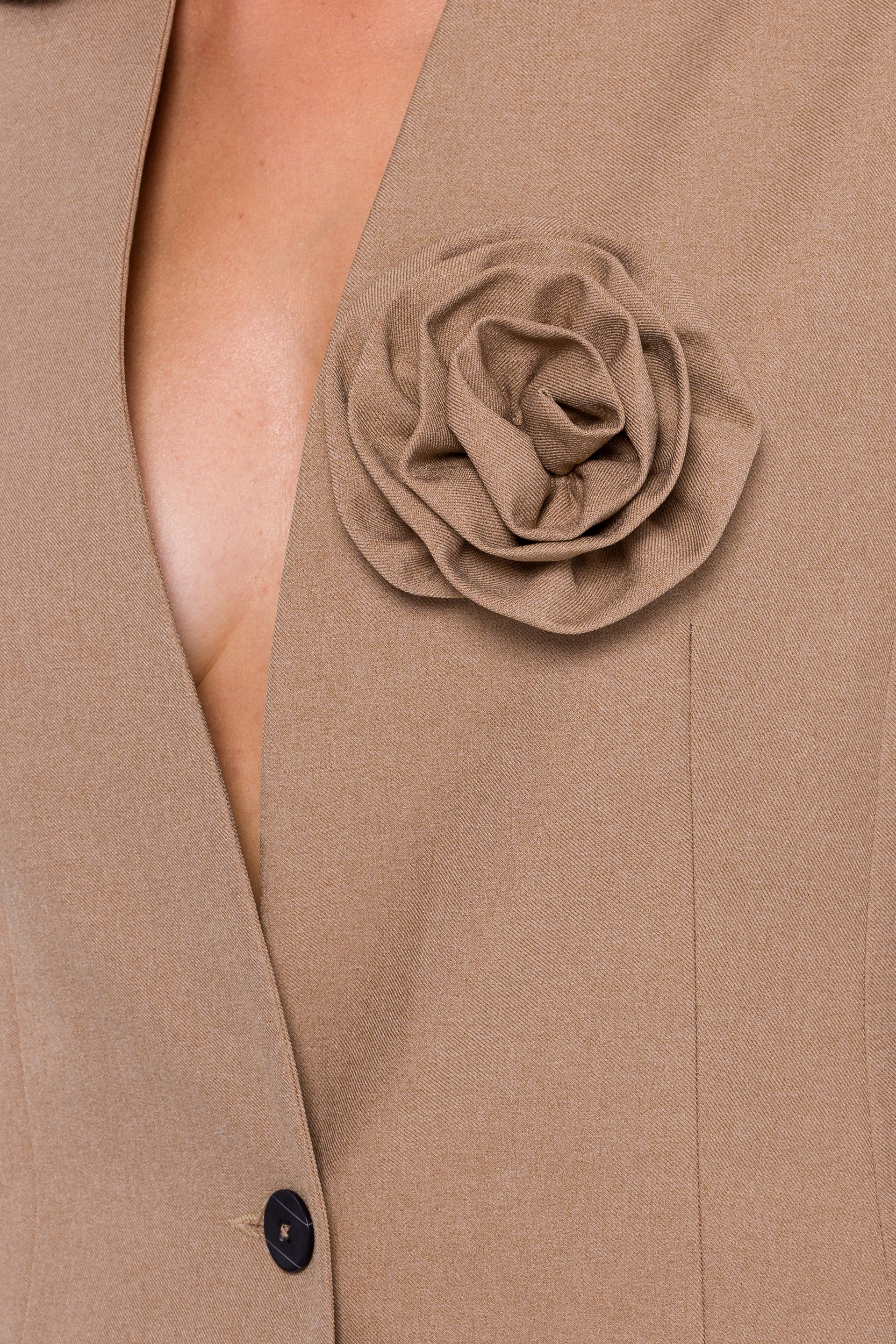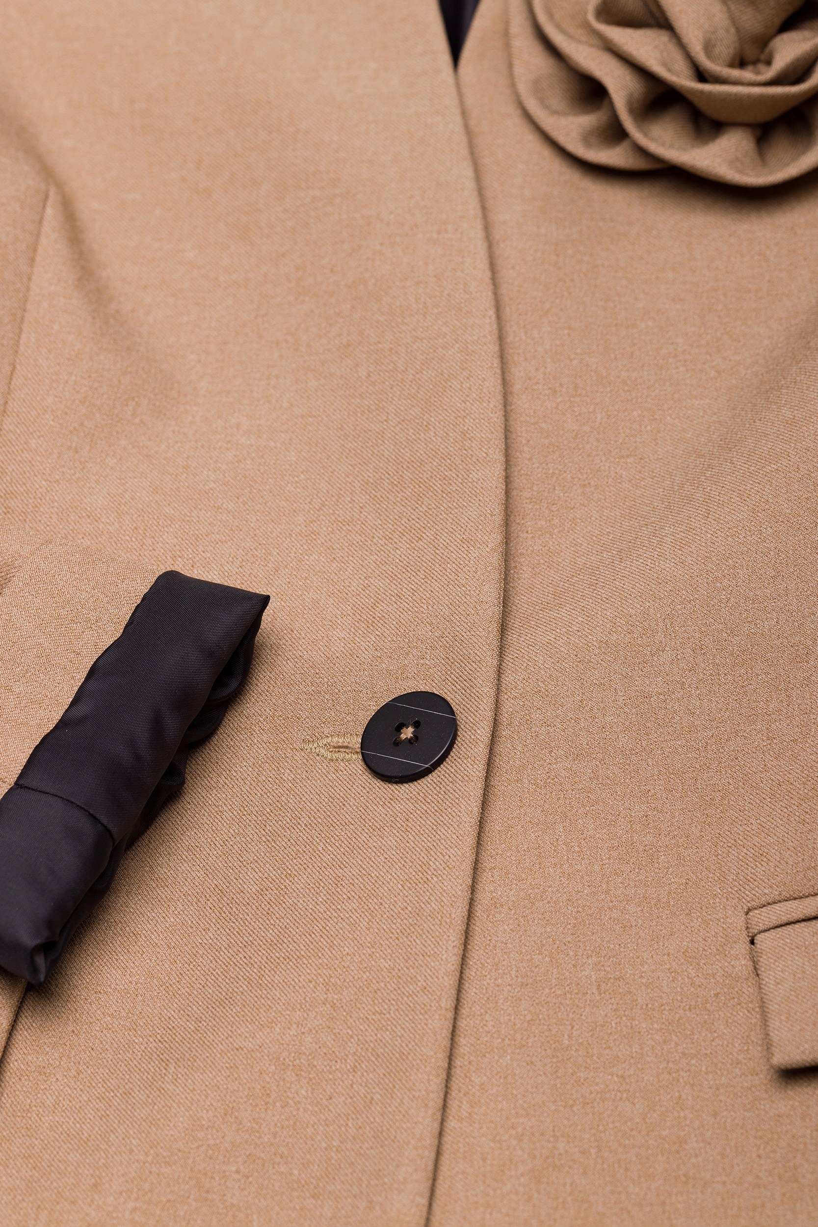 ▶ Самым отличительным элементом этой куртки является красивое съемное цветочное украшение, расположенное на груди. Эта деталь добавляет характера и утонченной женственности, подчеркивая уникальность этой модели.
