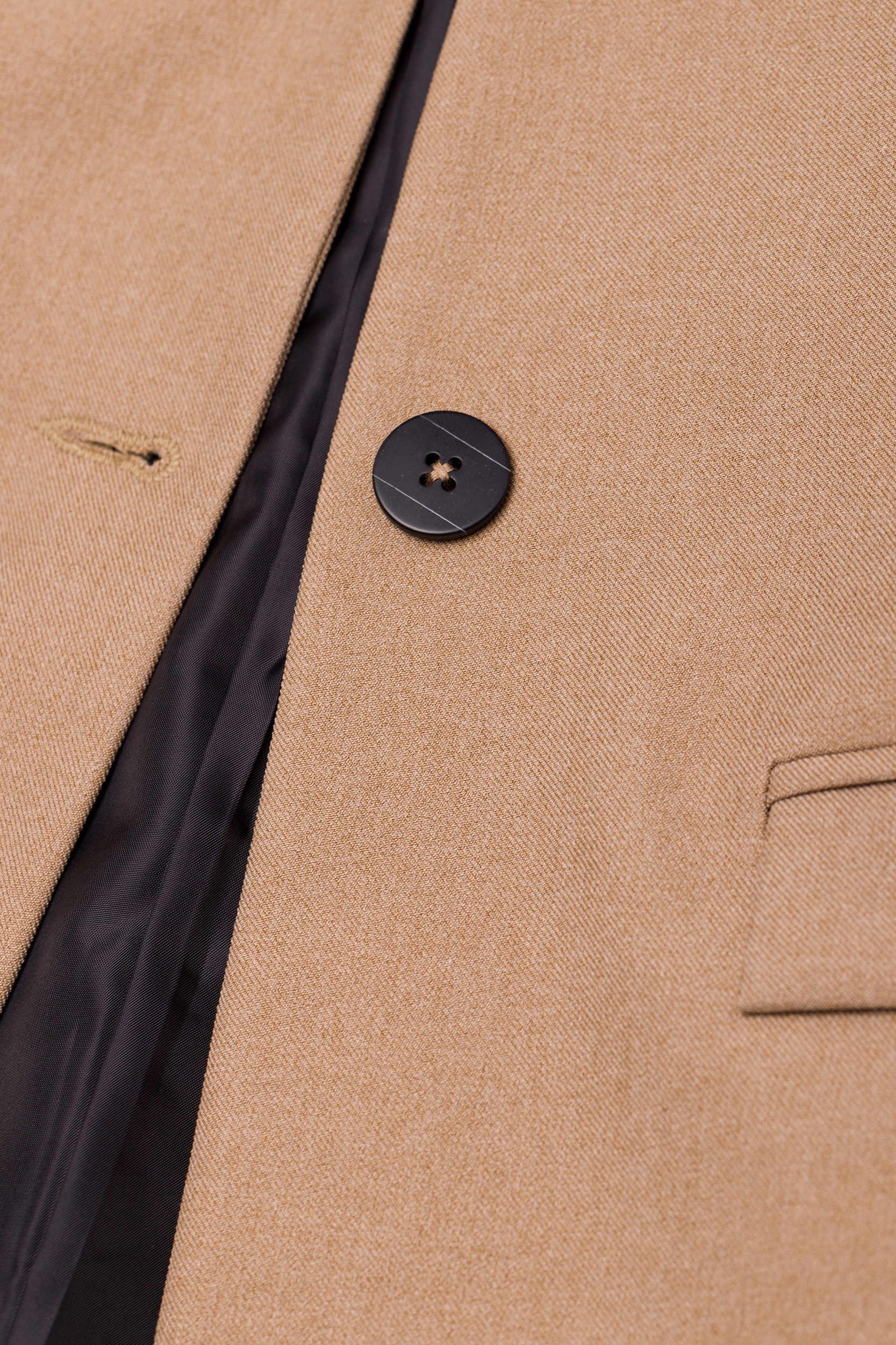 ▶ Куртка без воротника – минималистичный, но эффектный выбор, делающий весь образ легким и современным. Модель застегивается на одну пуговицу, что добавляет ей гармоничности и позволяет акцентировать внимание на тщательно подобранных деталях. Карманы с клапанами не только практичны, но и добавляют баланса простому, но изысканному крою.