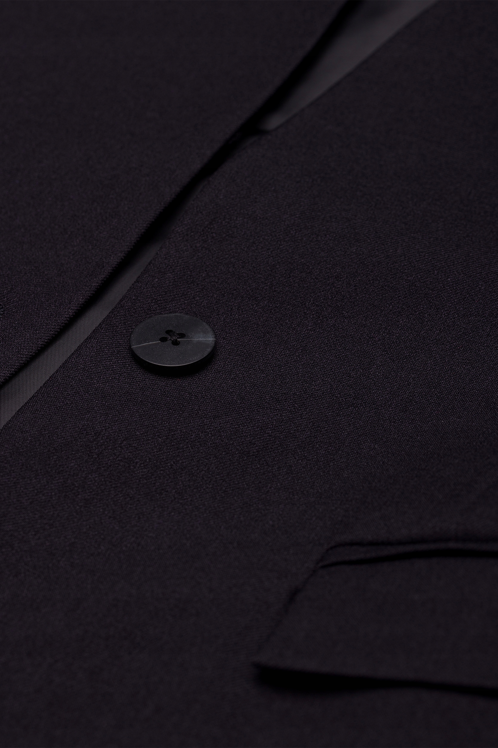 ▶ Куртка без воротника – минималистичный, но эффектный выбор, делающий весь образ легким и современным. Модель застегивается на одну пуговицу, что добавляет ей гармоничности и позволяет акцентировать внимание на тщательно подобранных деталях. Карманы с клапанами не только практичны, но и добавляют баланса простому, но изысканному крою.