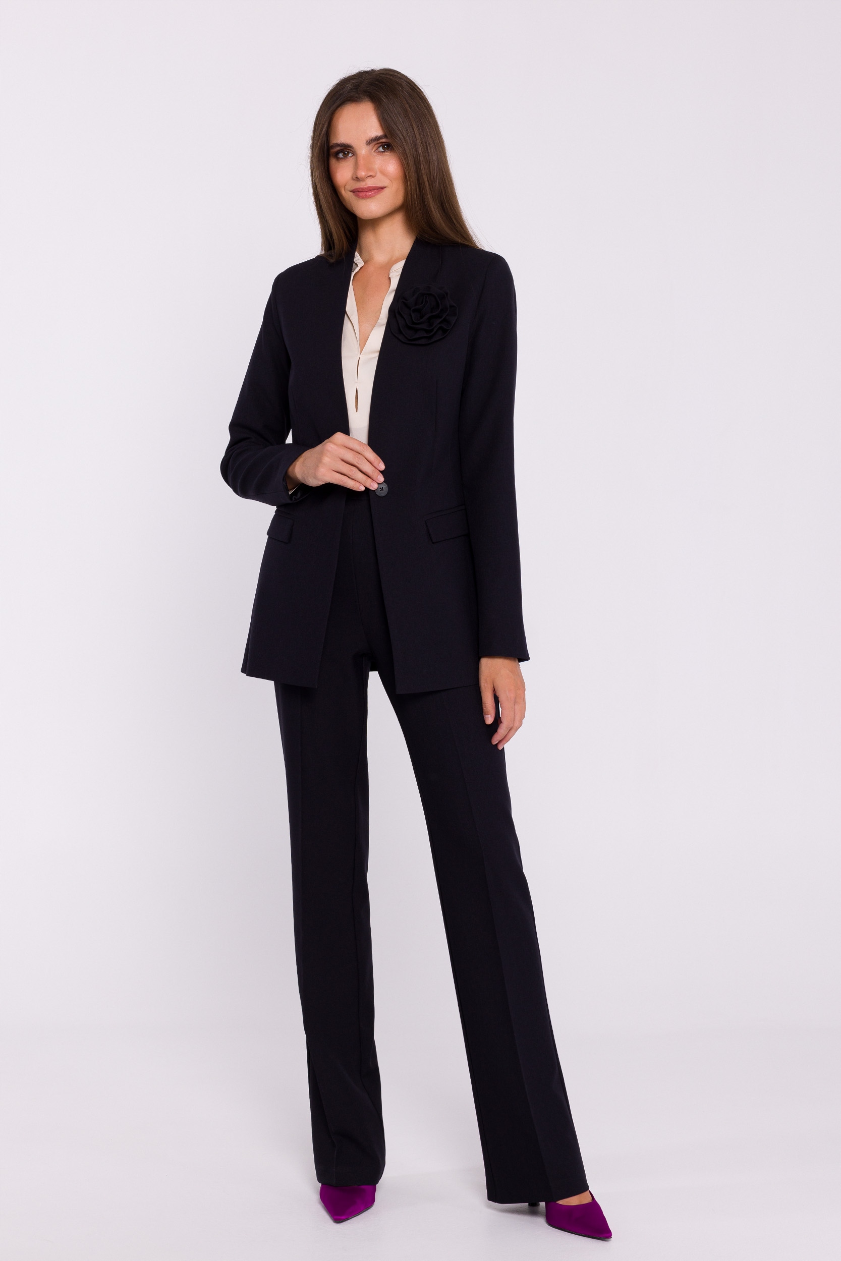 ▶ Самым отличительным элементом этой куртки является красивое съемное цветочное украшение, расположенное на груди. Эта деталь добавляет характера и утонченной женственности, подчеркивая уникальность этой модели.