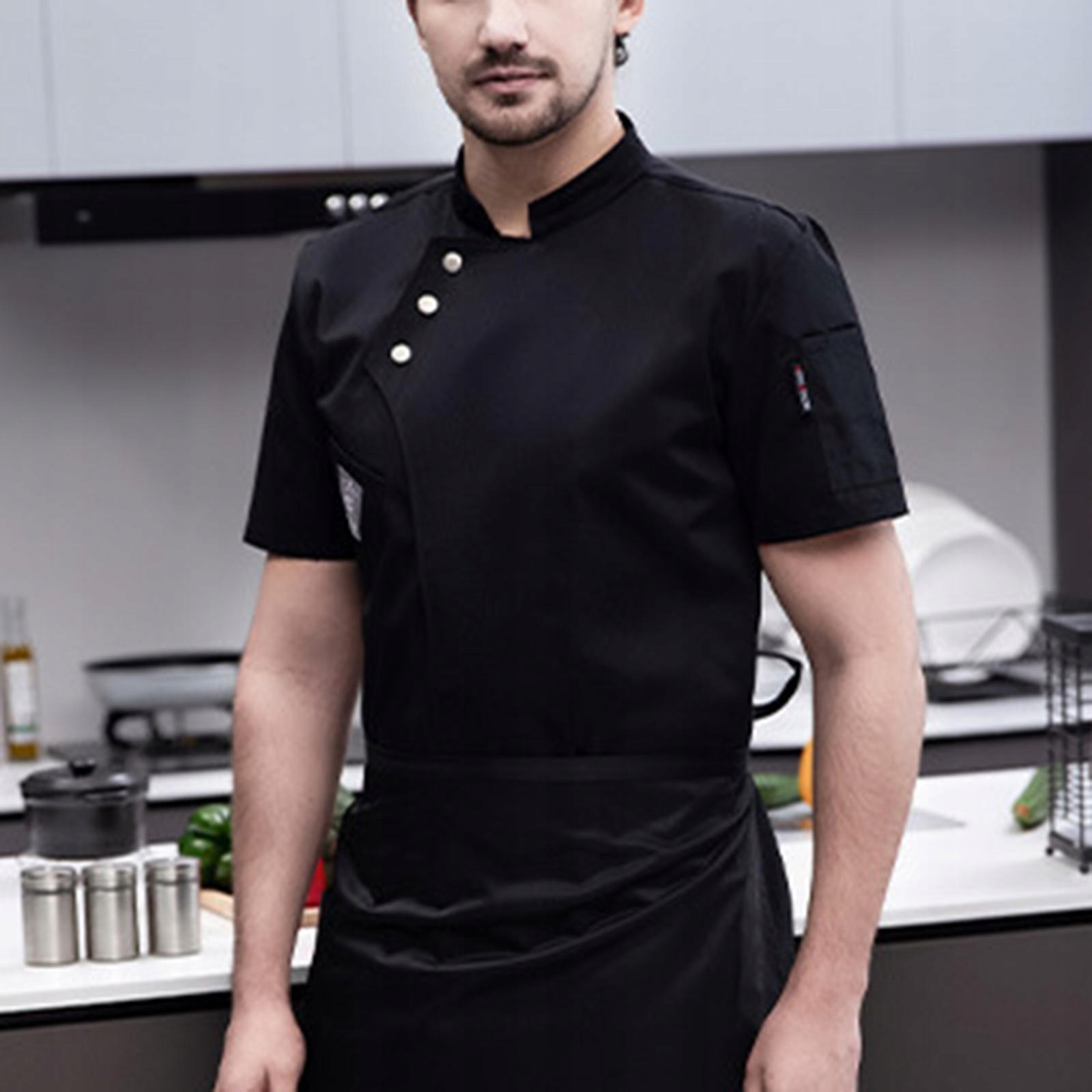 Куртка шеф-повара с короткими рукавами, одежда для приготовления пищи, простое пальто шеф-повара для ресторана, черный M