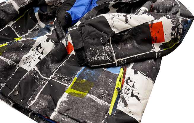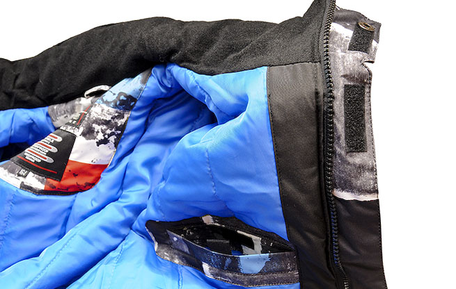 - передняя часть куртки застегивается на молнию и покрыта материалом, застегивающимся на липучку