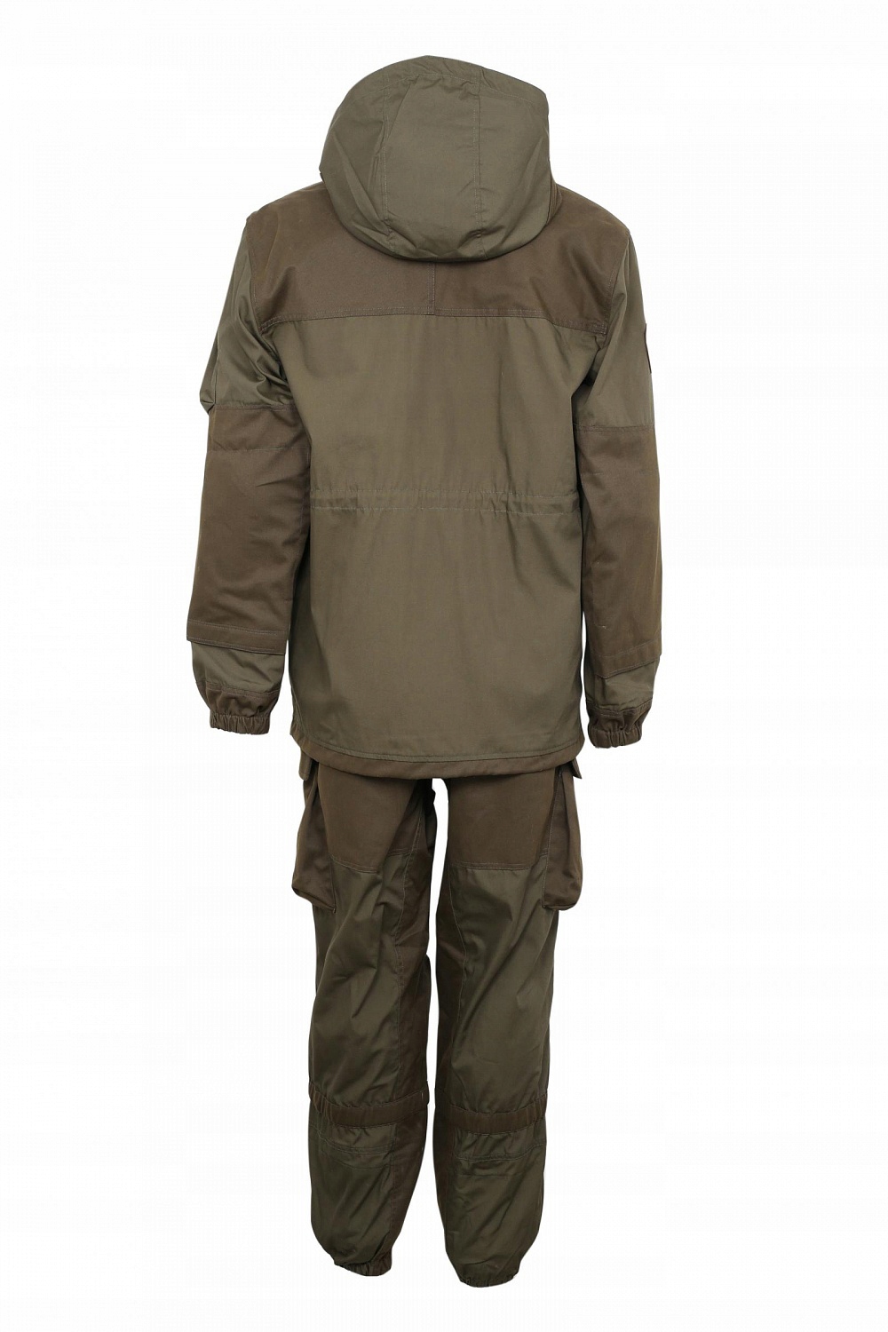 Для затягивания воротника и капюшона вшита резинка, которая фиксируется в нужном положении пружинными зажимами. Внизу куртки и вокруг талии также имеется регулируемая резинка. Куртка застегивается на пуговицы, а сами пуговицы застегиваются сверху широкой планкой, что обеспечивает хорошую защиту от ветра.