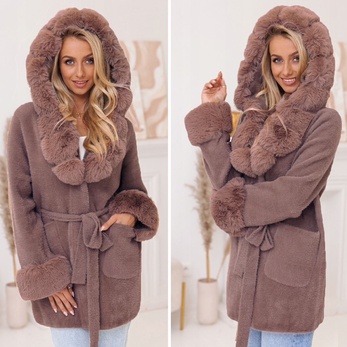 КУРТКА З М'ЯКОГО ХУТРА АЛЬПАКИ З ПОЯСОМ