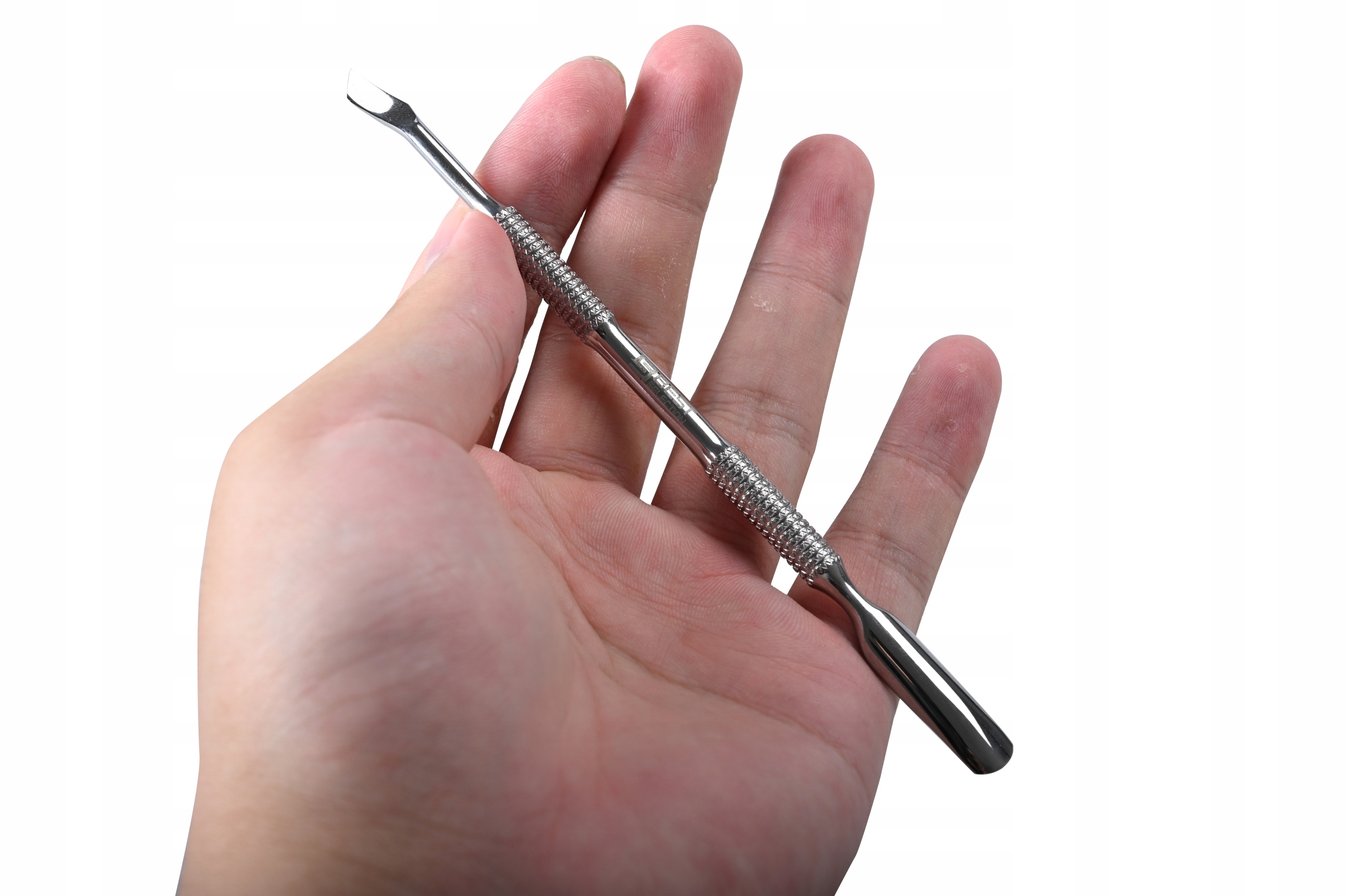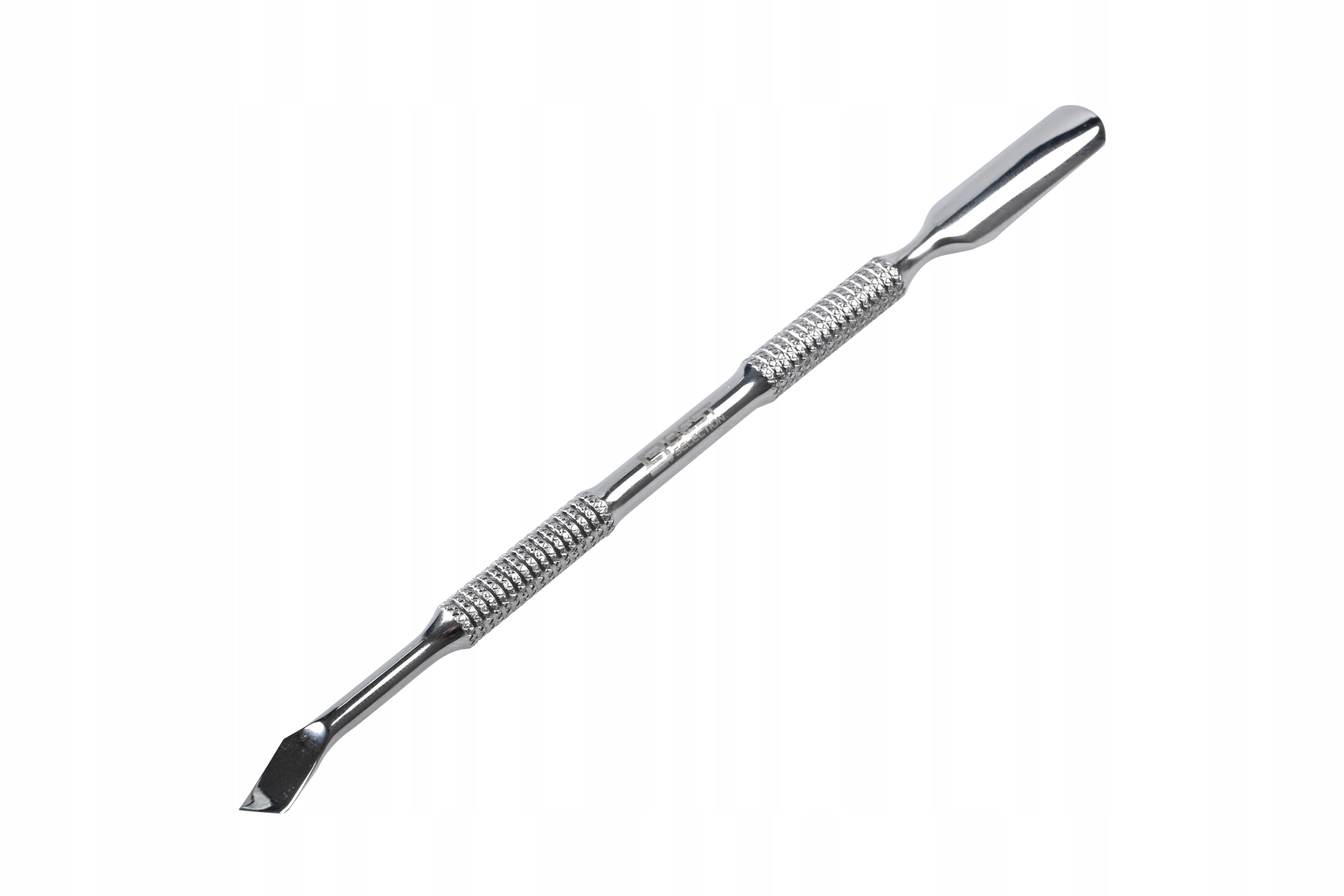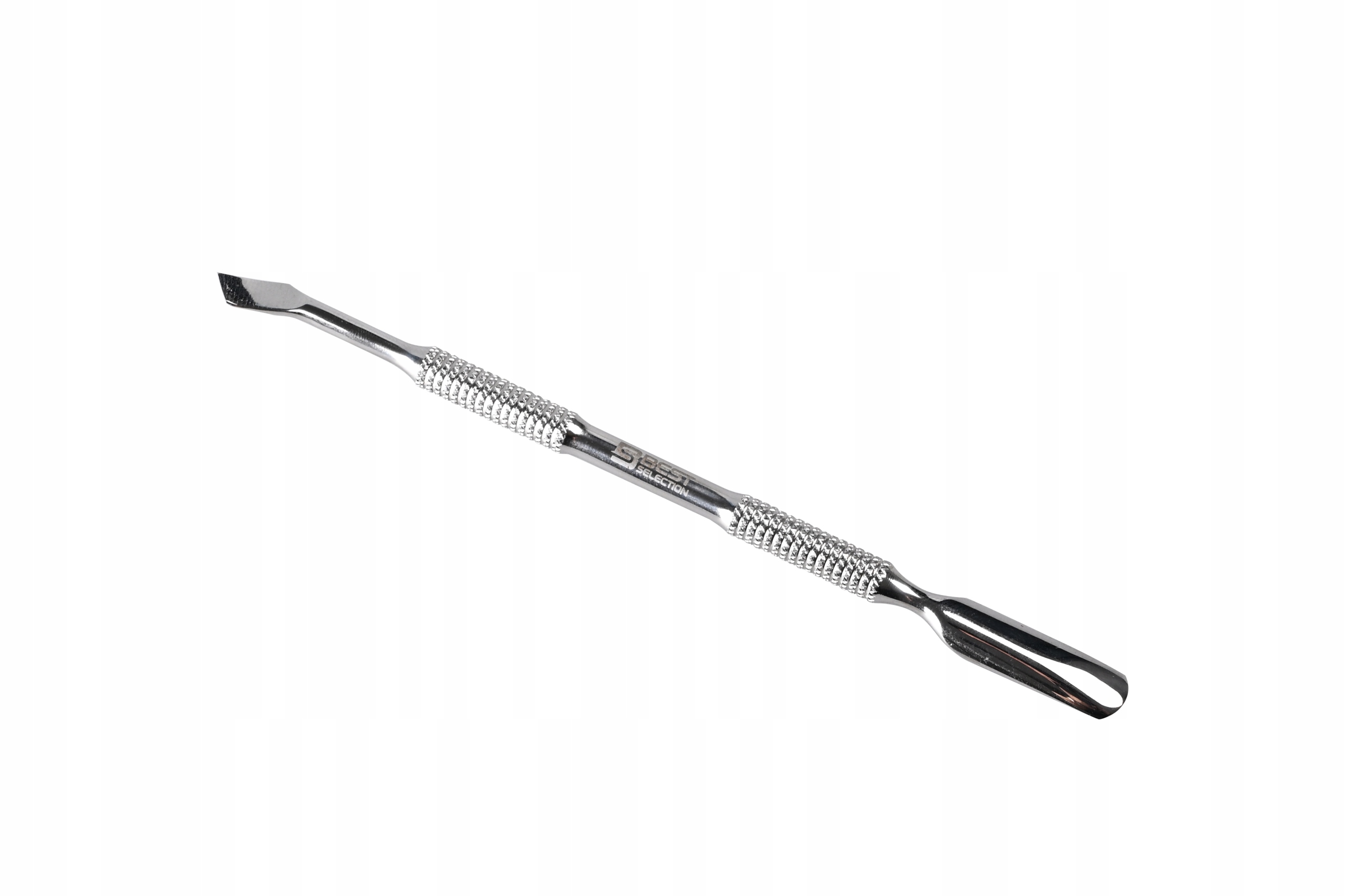 Двусторонний маникюрный инструмент — идеальный выбор для людей, которые заботятся об эстетике своего маникюра. их ногти. Изготовленный из высококачественной нержавеющей стали, инструмент отличается долговечностью и устойчивостью к коррозии. Эргономичная форма обеспечивает надежный захват, что облегчает точное удаление кутикулы и очистку ногтей. С одной стороны расположена закругленная лопаточка, которая аккуратно отодвигает кутикулу, а с другой стороны — заостренный элемент, позволяющий тщательно очистить труднодоступные места. -достичь мест.